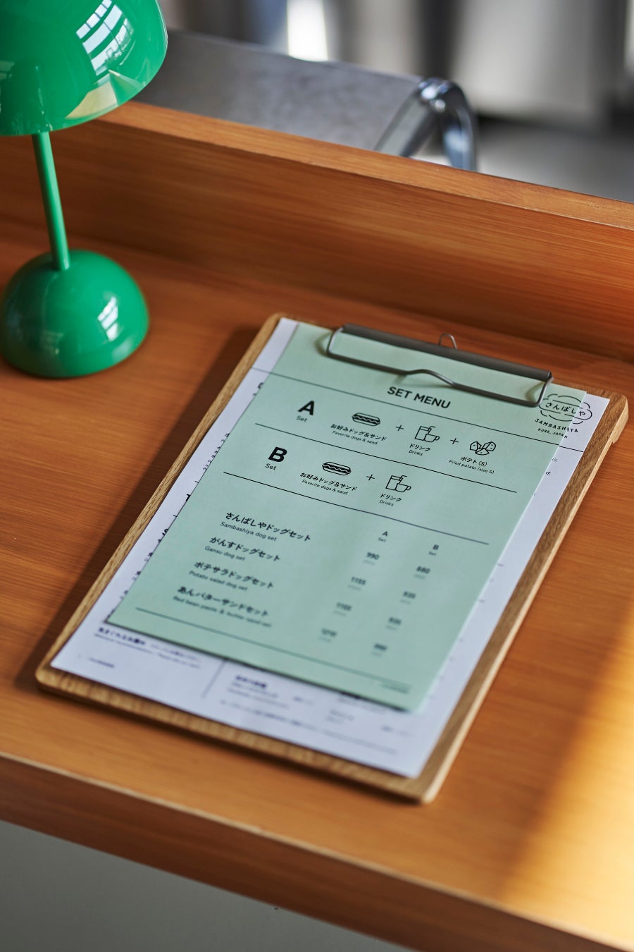 看板メニューの「さんばしやホットドッグ」1個500円(税込)