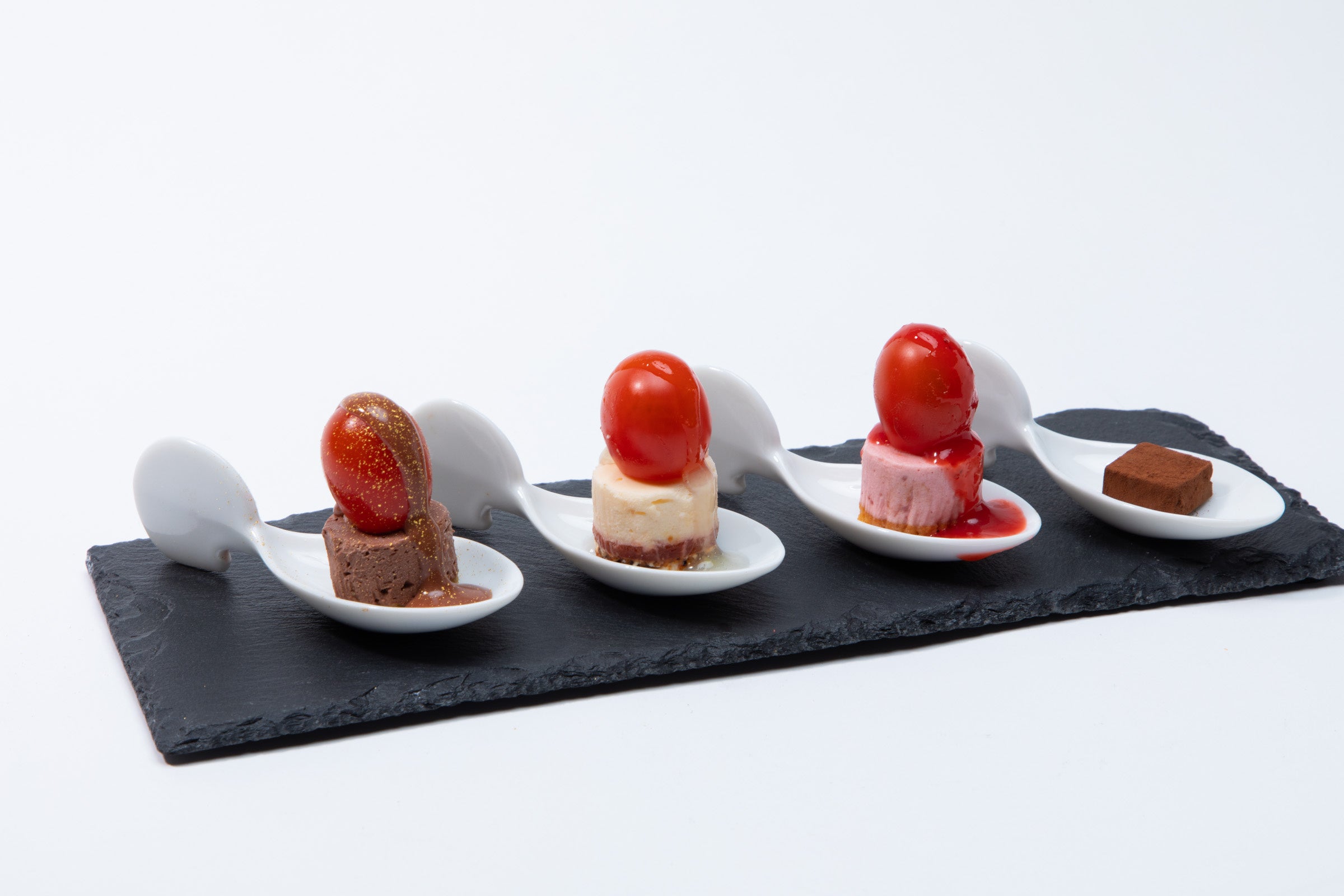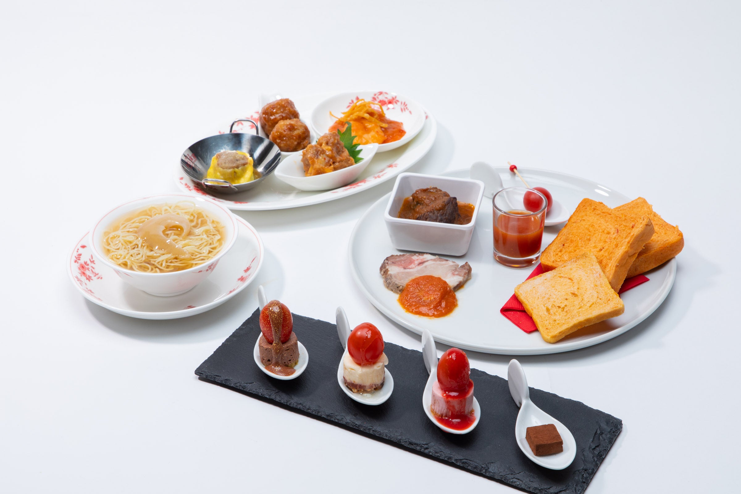 「広東名菜 赤坂璃宮OSMIC STYLE」「OSMIC DISH」「LE CHOCOLAT DE H」のOSMICトマトを使ったおすすめメニューを数種類少しずつお楽しみいただけるスペシャルなプレートをそれぞれご用意。1皿でも組み合わせての注文も可能。