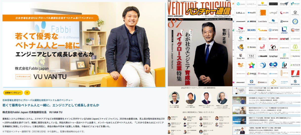 株式会社Fabbi Japanはこの度、2023年度ベストベンチャー100に選出されました。