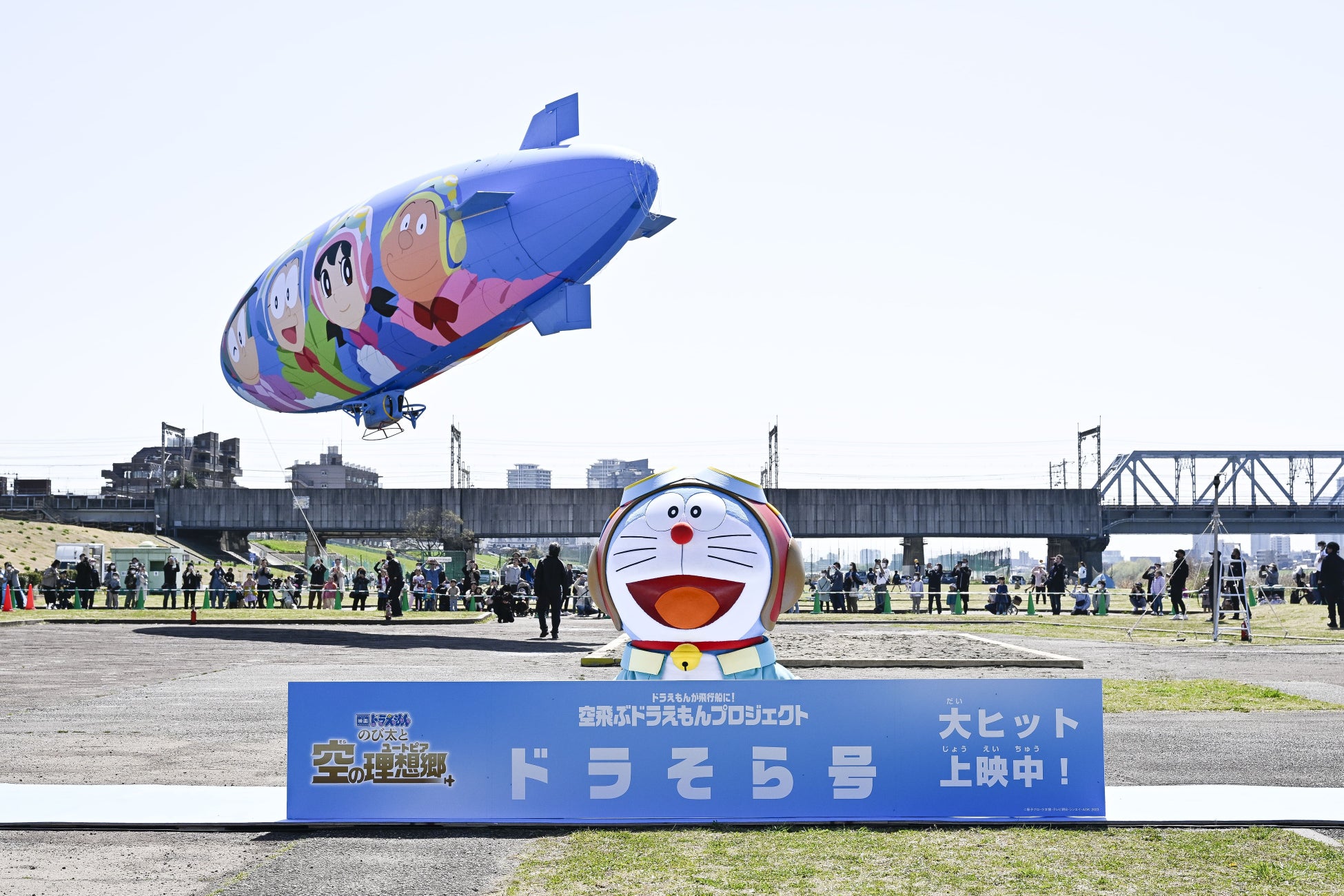 2023年3月3日(金)シリーズ42作目となる『映画ドラえもん のび太と空の理想郷(ユートピア)』が公開されました。これを記念し、3月19日(日)に、全長17mの巨大な飛行船の出発イベント「ドラえもんが飛行船に!~空飛ぶドラえもんプロジェクト~」を東京・多摩川丸子橋緑地にて開催いたしました。