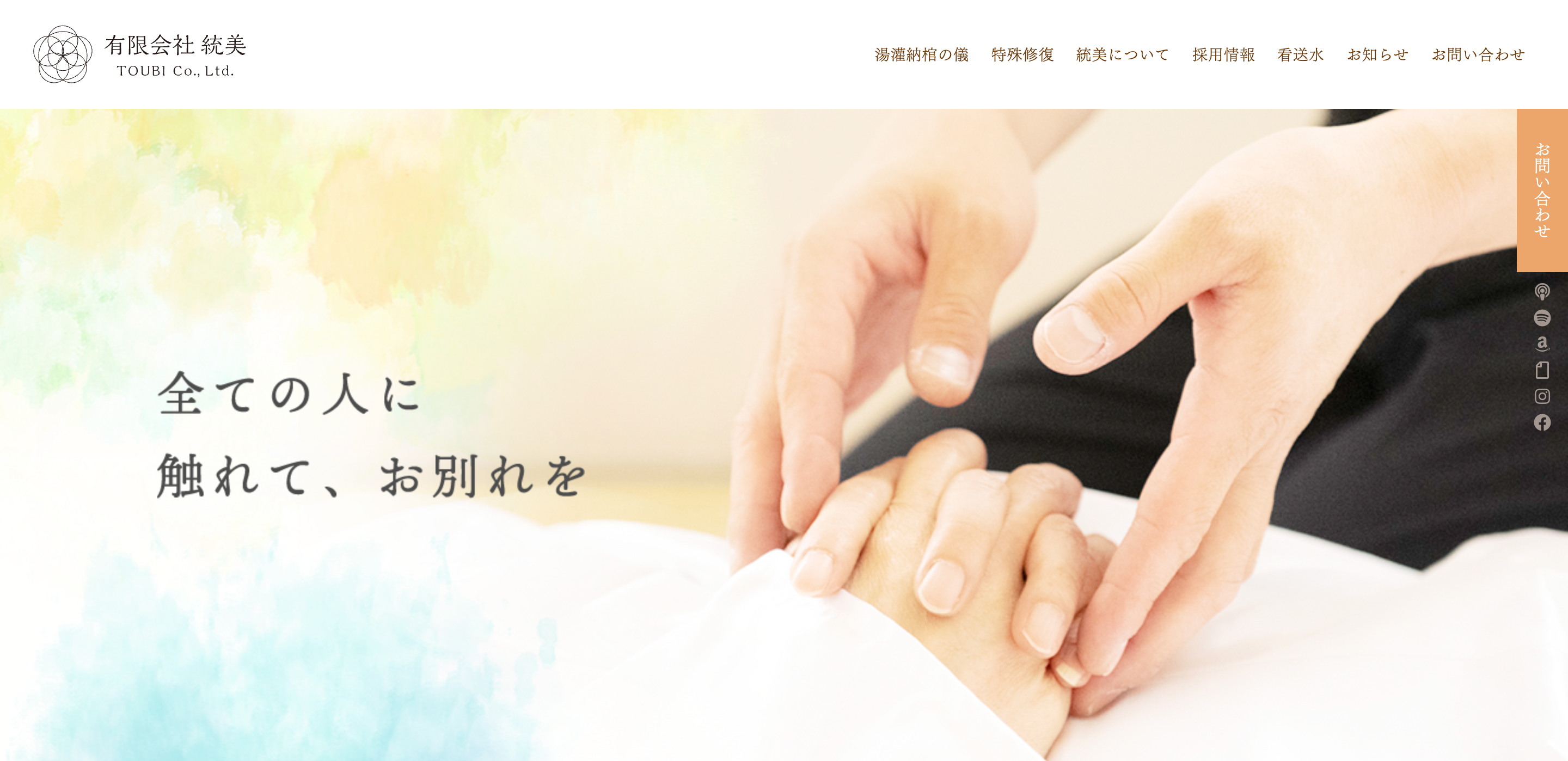 東京都足立区で1999年12月1日創業。亡くなった方を清める一般的な「湯灌納棺の儀」に加え、事件・事故・自死などにより状態の悪いご遺体の修復保全を強みとする「特殊修復」の高い技術を持つ日本有数の遺体保全専門企業。葬儀業界ではご遺族にとっての【最期の砦】と呼ばる。24時間、最大30名安置できる施設を持っていることで、非常に難しい修復も時間をかけて行い、これまで30万人以上の故人様と遺族が「会って、触れる、お別れ」を作り出している。