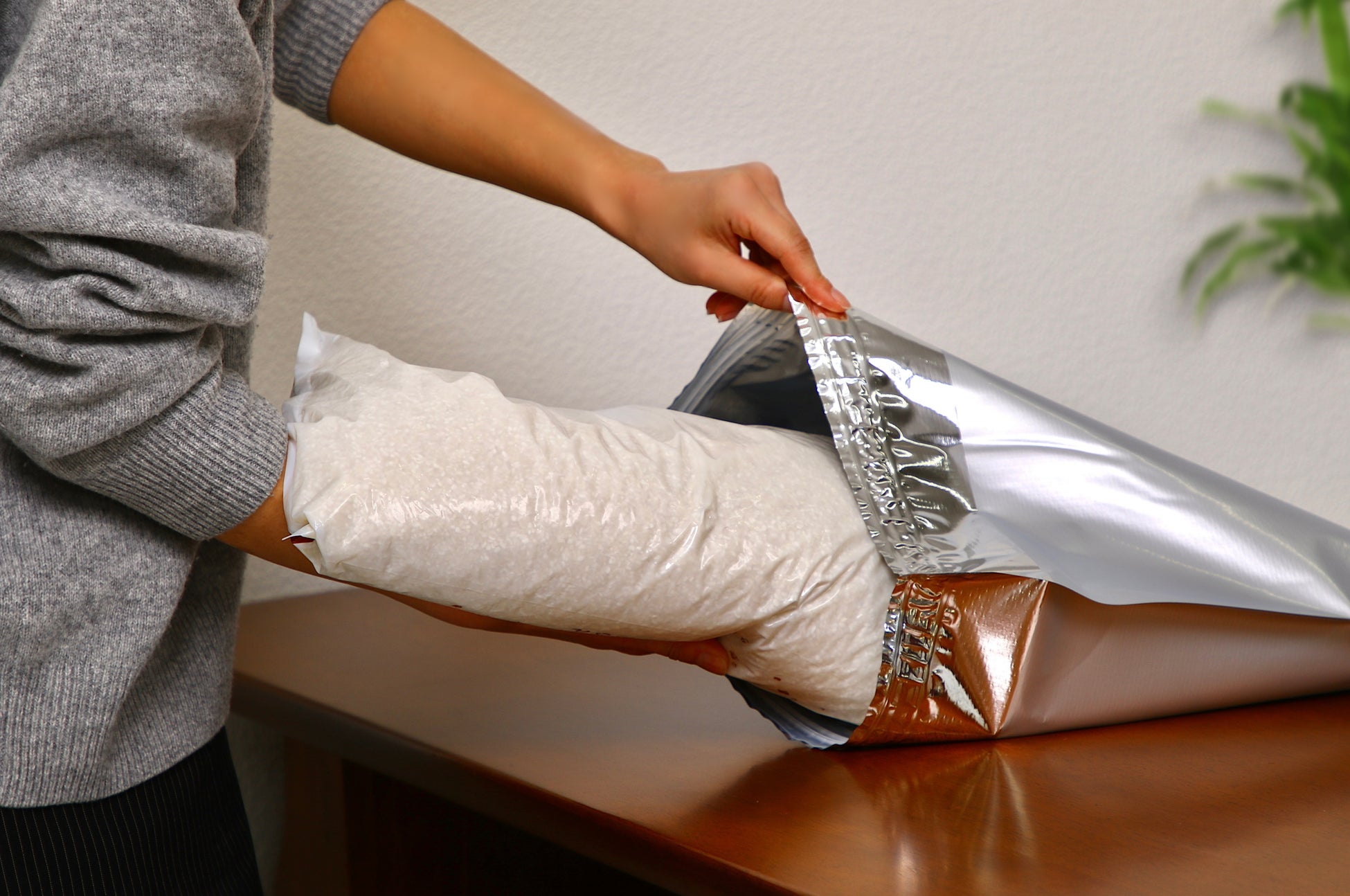 昨年の発売以降、多くのお客様にご愛用いただいているアルミ製真空パック お米保存袋「極厚 米ガード」から、10kgタイプが新登場です。従来の30kgタイプの保存性能はそのままに、ご家庭でのお米の保存・備蓄に最適なコンパクトサイズに再設計しました。