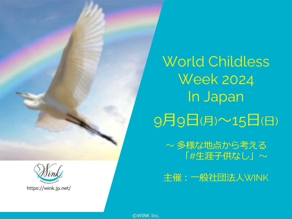 一般社団法人WINK(Wellbeing Institute for No Kids)は、9月9日(月)~15日(日)に、子どものいない人を対象としたイベント「World Childless Week 2024 in Japan」をオンライン開催いたします。