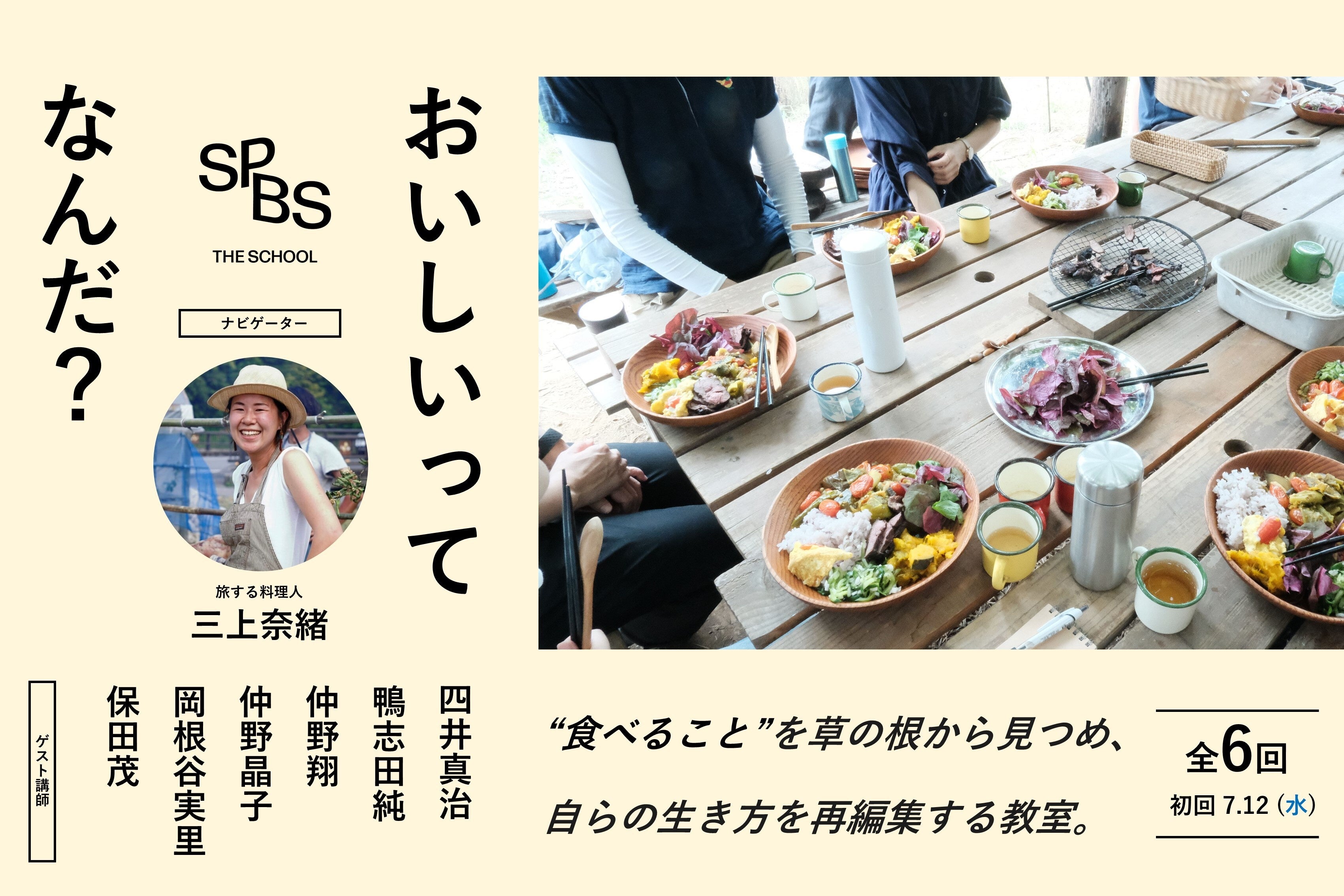 そこで、出版する本屋SHIBUYA PUBLISHING & BOOKSELLERS(略称:SPBS、所在地:東京都渋谷区、代表:福井盛太)は、「旅する料理人」として日本各地を飛び回り、その土地の食材で料理することをライフワークとしている三上奈緒さんをナビゲーターにお迎えし、農園でのフィールドワークや対話、食事などを通して「本当のおいしい」を哲学的に学ぶ教室を2023年7月より開講します。(カリキュラム全6回)