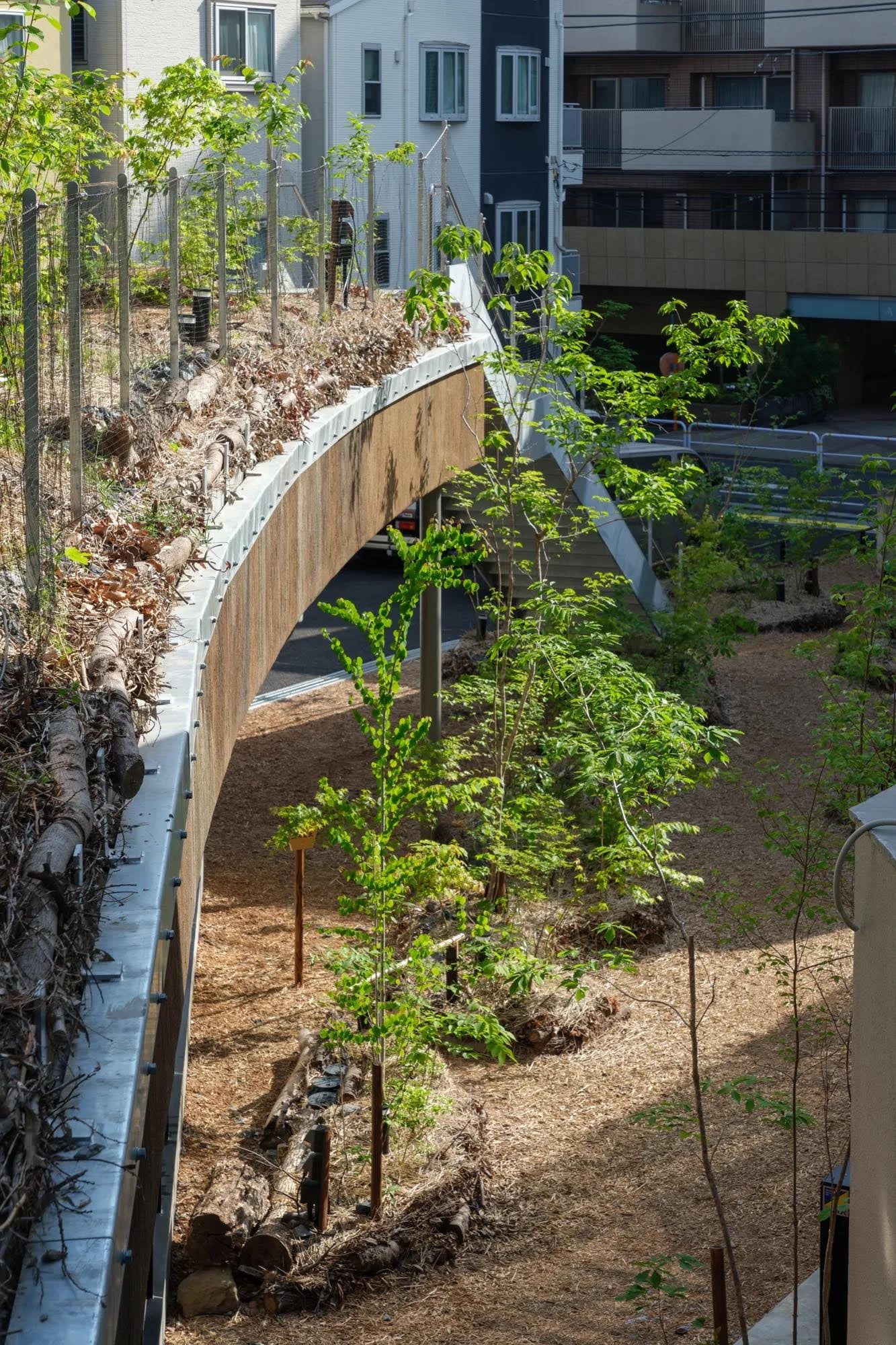使用された自然素材は重機ではなく、すべて人の手で施工され、灌水装置も入っていない。自然の力と人の手によって、環境再生の「かなめ」となるように育てていく都市の新しい建築の在り方として注目されている。