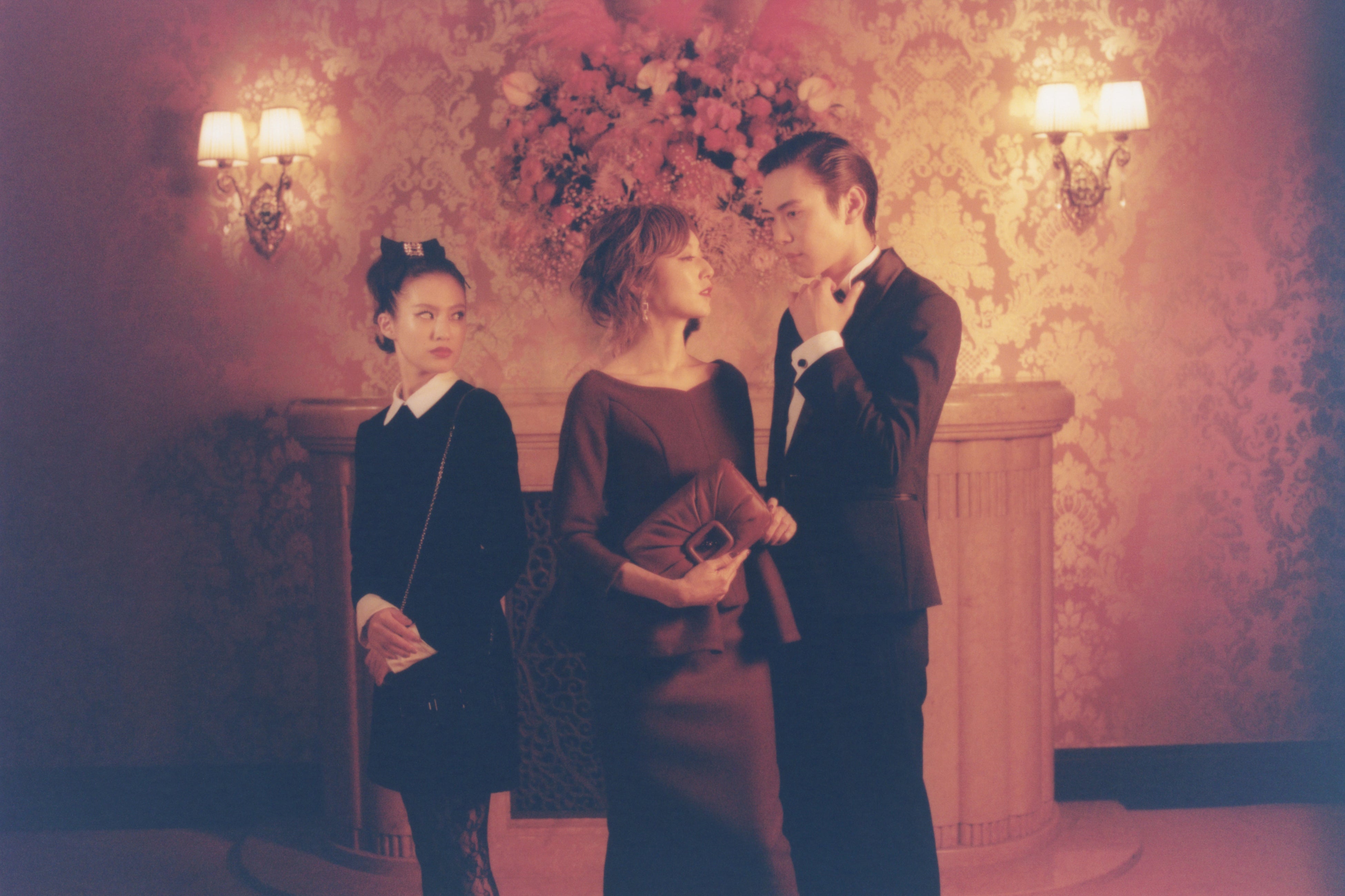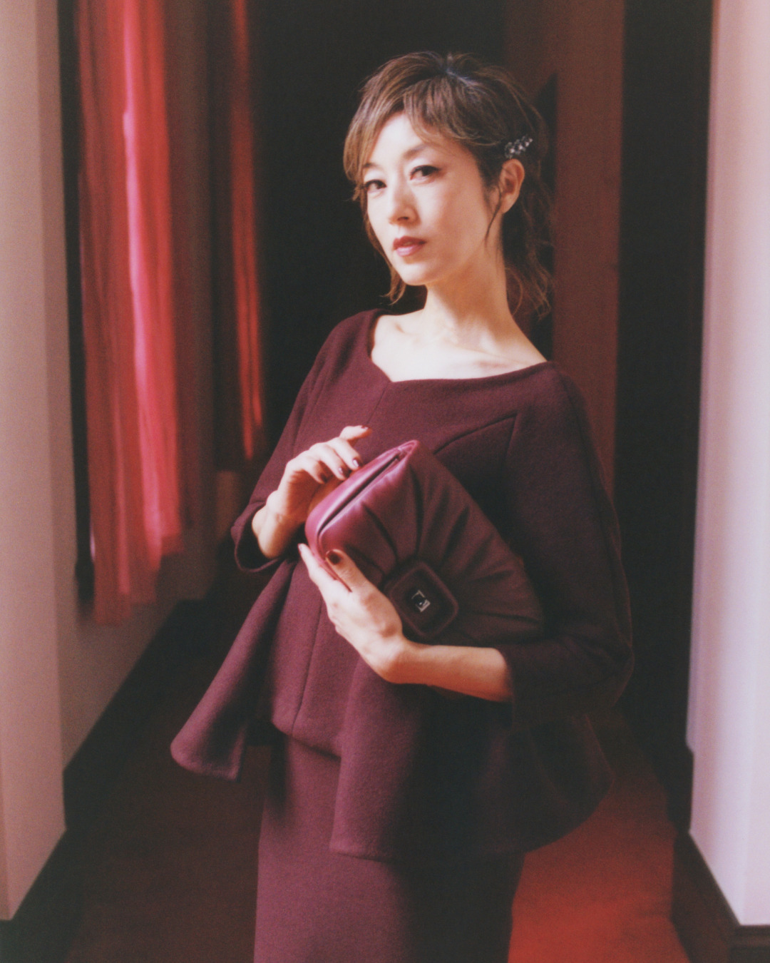 高岡早紀、恒松祐里、内藤秀一郎。そのひとりひとりの装いをヴィヴ ショック バッグが引き立てます。