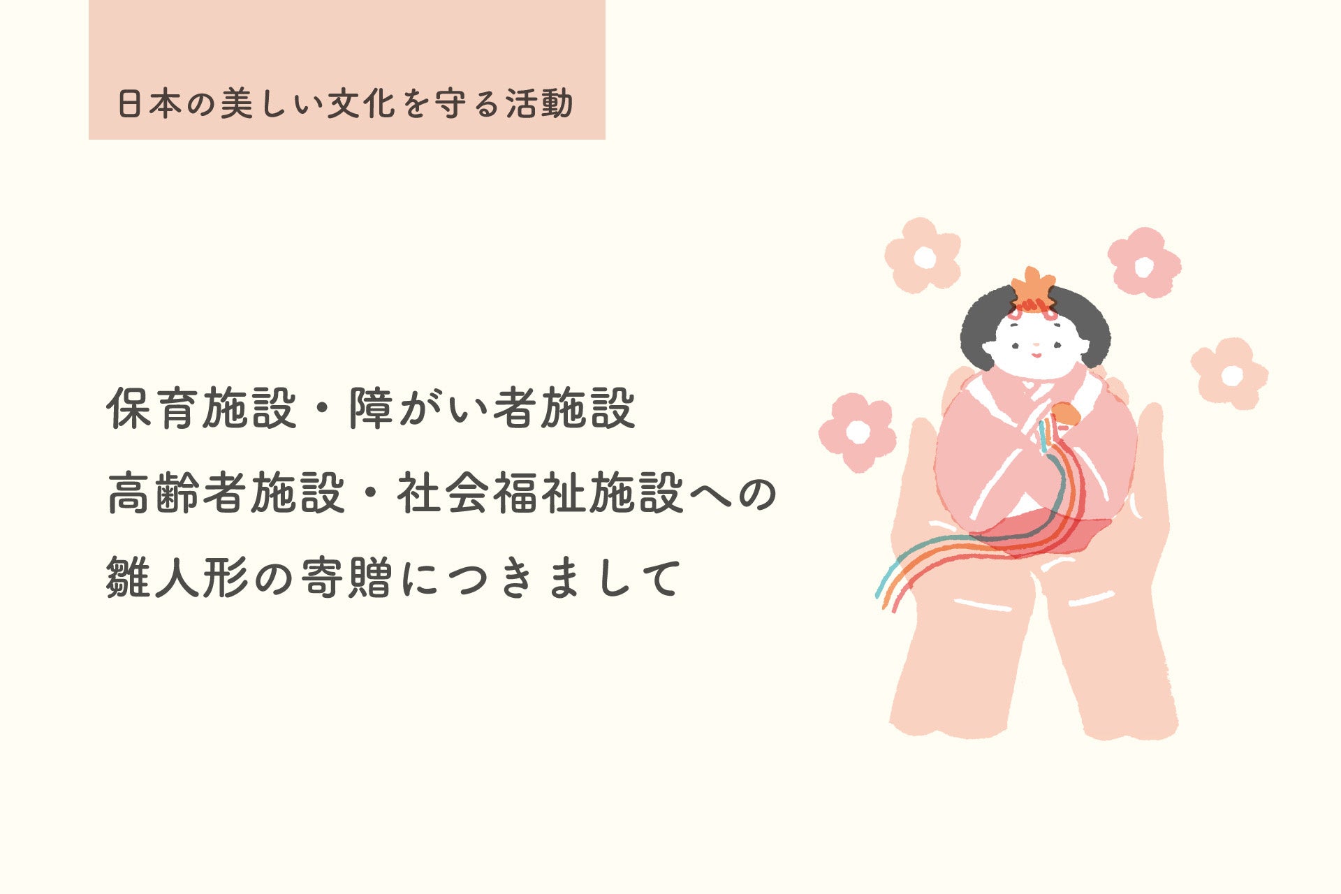 ~保育施設・障がい者施設・高齢者施設・社会福祉施設へ雛人形を寄贈いたします~
