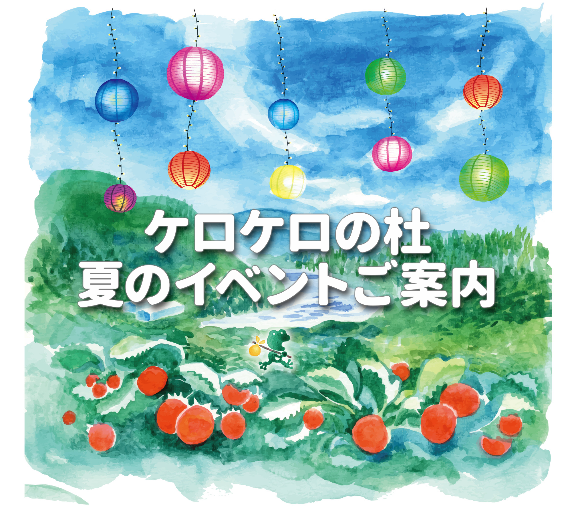 ケロケロこども夏祭りでは、通常のいちご狩りの他にお子様にお楽しみ頂けるさまざまな催しものを開催いたします。