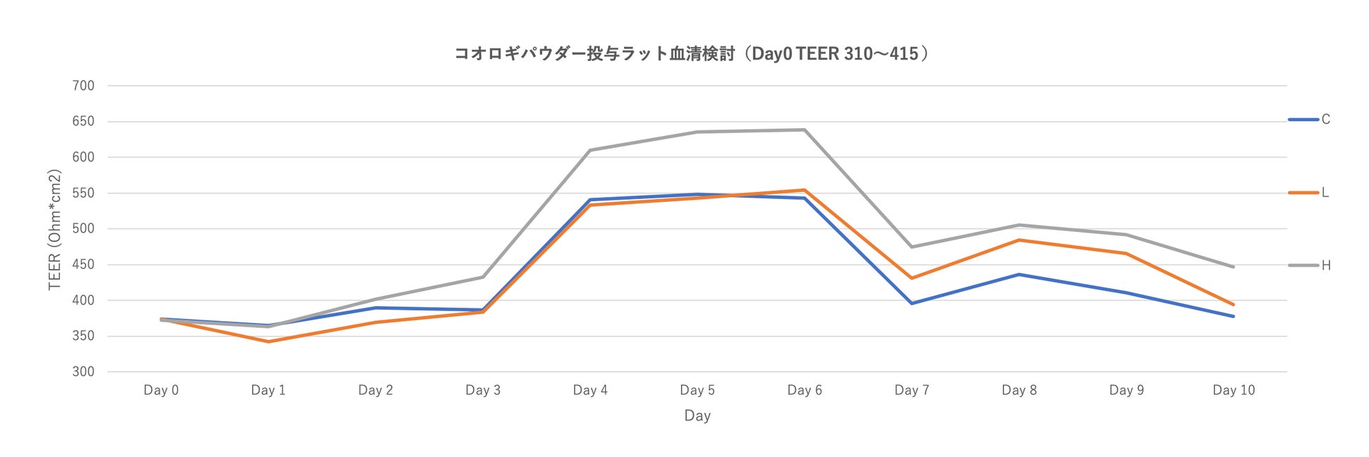 コオロギパウダー高用量摂取群でTEERが改善する傾向を確認。