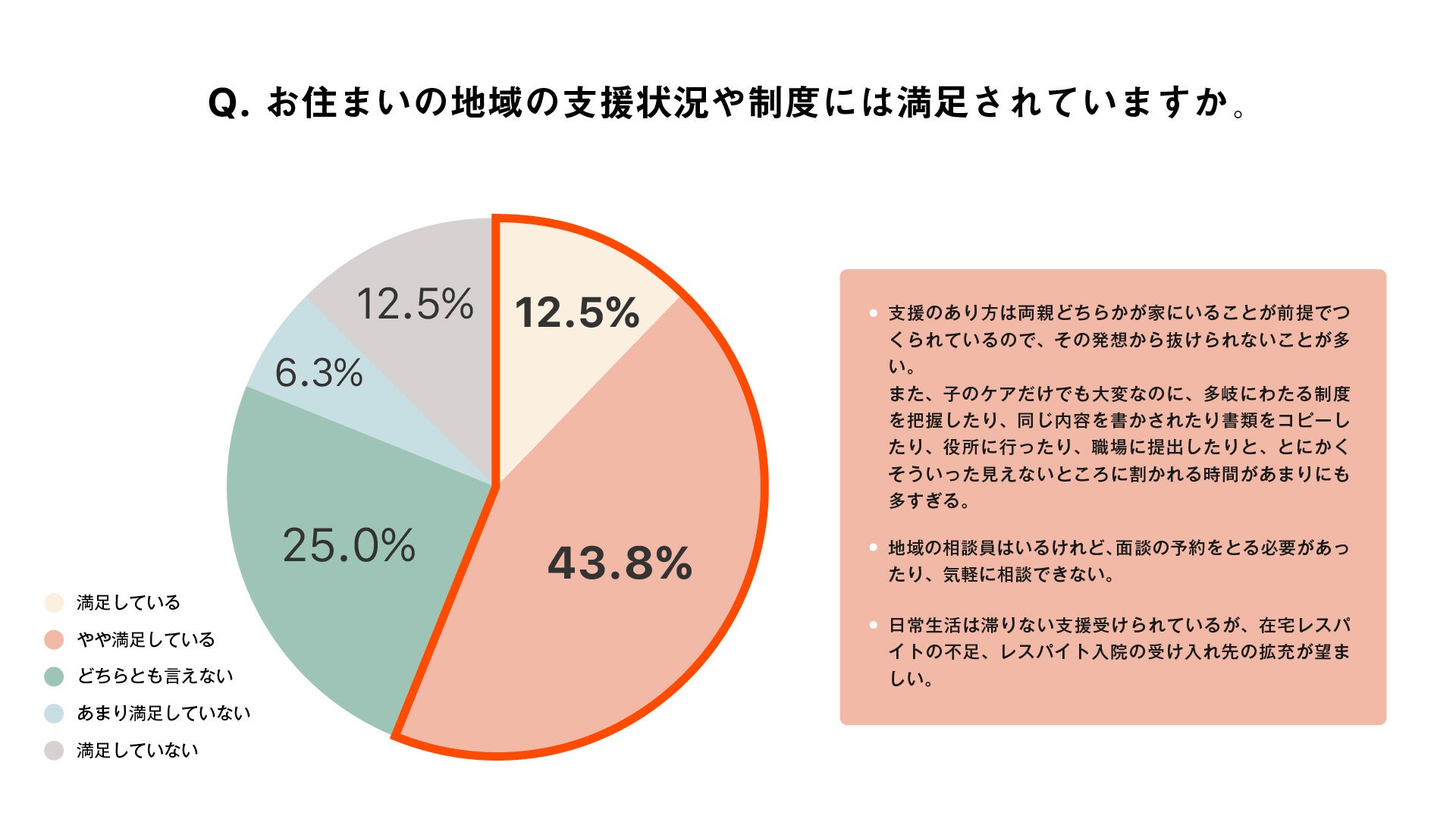 ■地域の支援状況や制度に「満足している」「やや満足している」が合わせて約半数