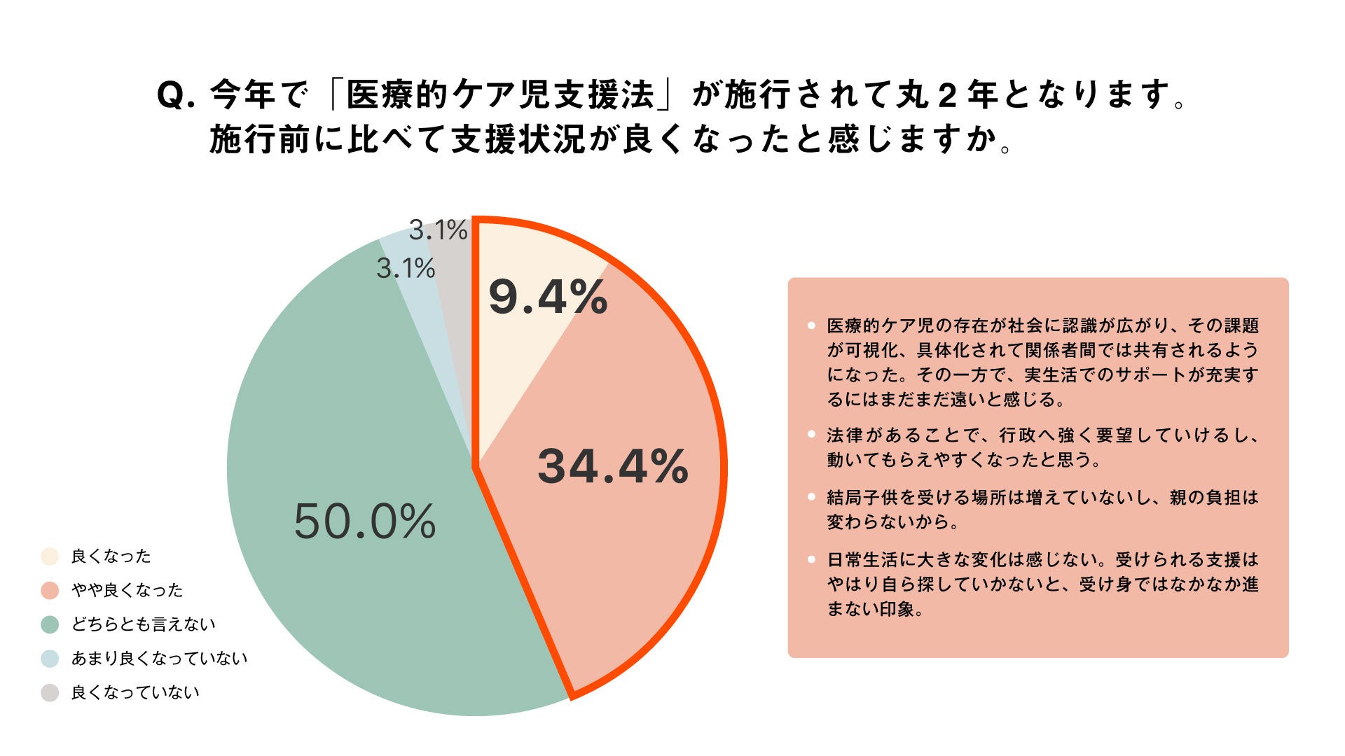 ■「医療的ケア児支援法」の施行から2年、施行前と比較して状況が良くなったと答えた人は約4割
