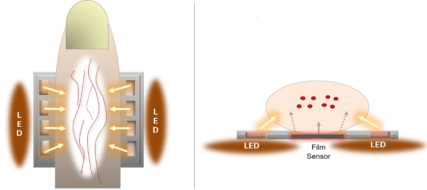本センサーの特長として、当社独自の反射散乱方式※1 により、静脈に照射する近赤外LEDをフィルムセンサーと同一平面上に配置できますので、より多様な製品展開が可能です。既に、複数のメーカーとの協業を進めており、早ければ1年内の商品化を目指します。また、本センサーを搭載するデバイス形状や用途により、センサーの大きさや性能、その他様々なご要望にも柔軟に対応して参ります。