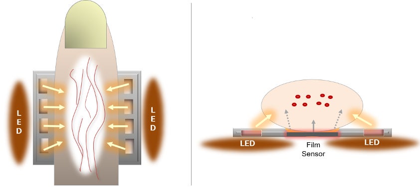 静脈認証とは、人によって全く異なっている静脈のパターンを使って個人を正確に特定する方法 です。フィルム状にした指紋センサーは既にスマートフォンや医療機器などで使われて久しいですが、指紋による認証は偽造されるリスクがあるほか、ウェット、乾燥や加齢といった指自体の環境変化の影響も受けやすく、また、顔認証については登録への抵抗感、SNSなどインターネットから写真を抜粋、加工しての悪用、その他プライバシー問題が顕在化されております。それに比べて、人為的に変化を加えることが難しい皮膚の内部情報を使う静脈認証は最も安心で利便性の高い生体認証方式と言われ注目を集めております。