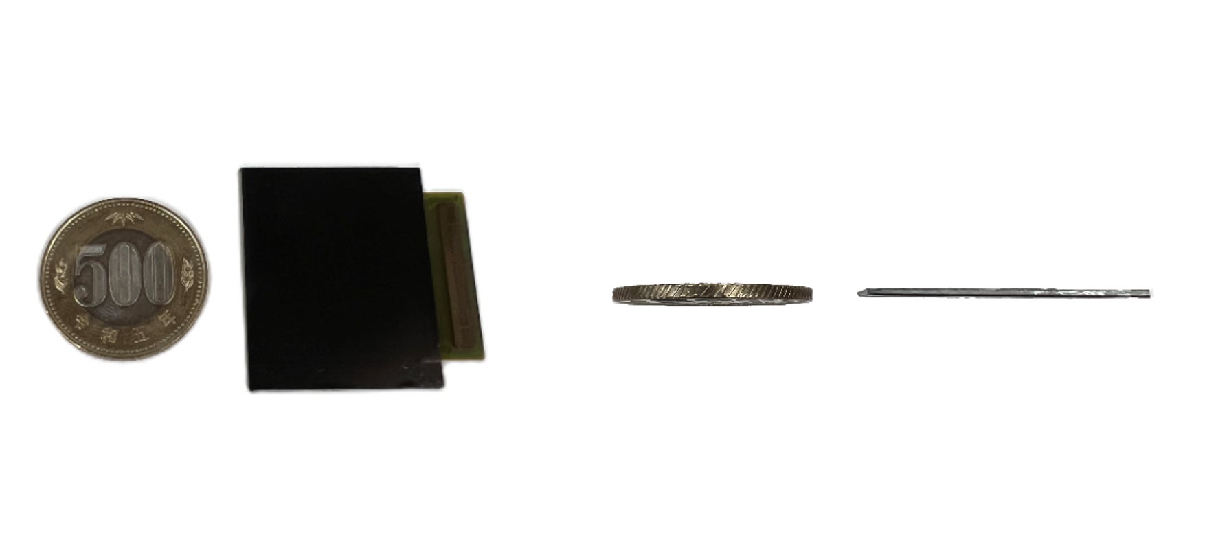 静脈を撮像する本センサー (右側) 真横から(右側) 厚さ1mm程度