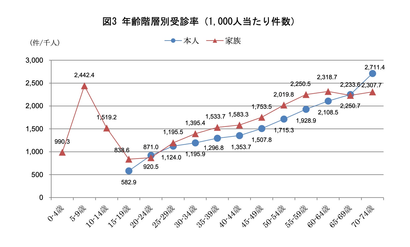 また年代別でみた受診率は、年齢が上がるにつれて高い傾向にあります。