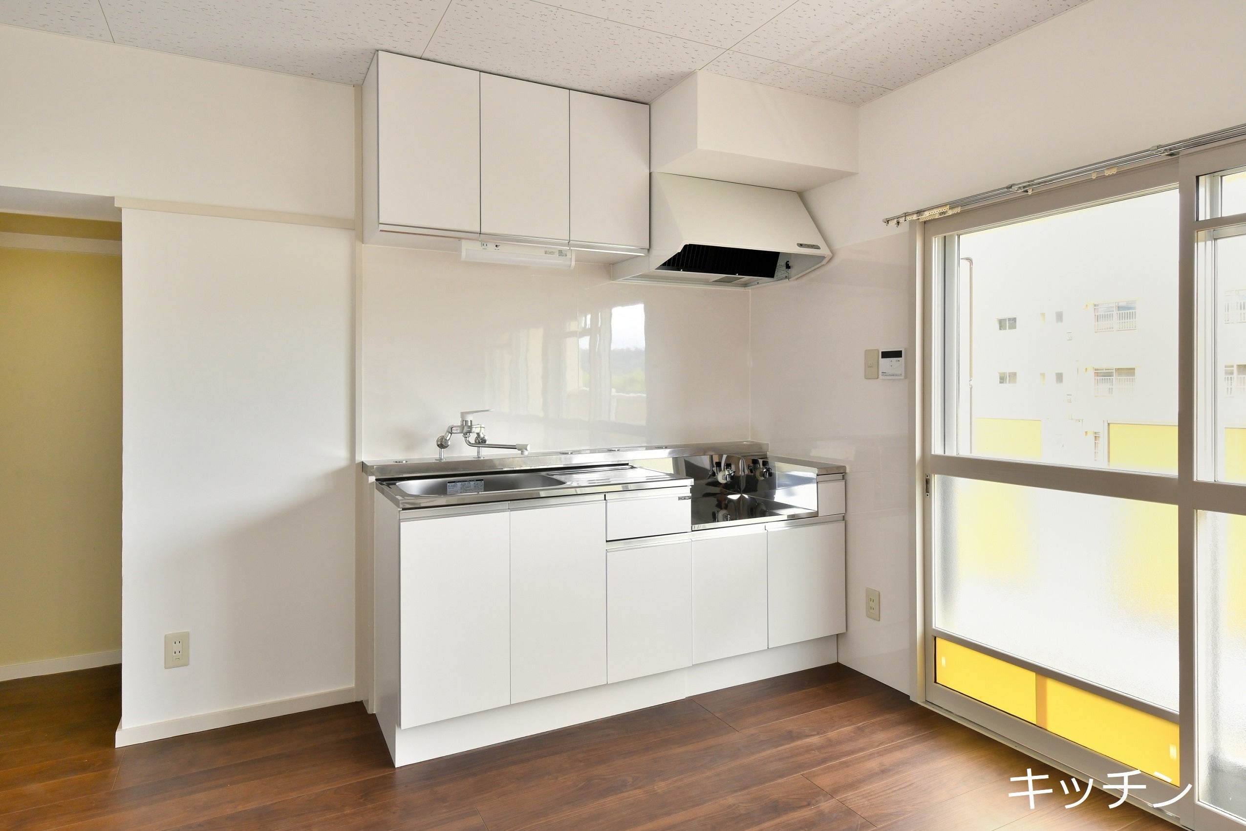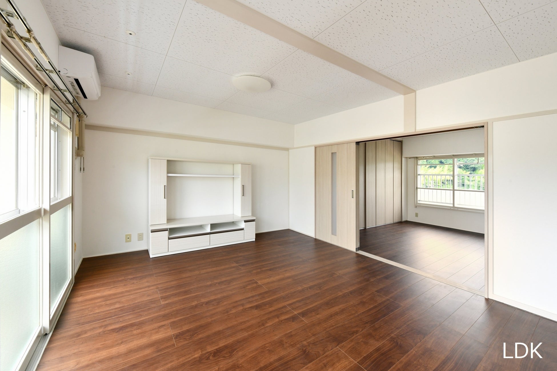 間取り変更により広々LDK(リビング・ダイニング・キッチン:約12.5畳)を実現/LDK・洋室のフローリング化/収納付きテレビボード家具設置(LDK)/壁面クローゼット設置(洋室)/エアコン設置(1台)/暖房便座(ウォシュレット付き)/ユニットバス/ガス給湯器(キッチン・風呂)/クロス張替