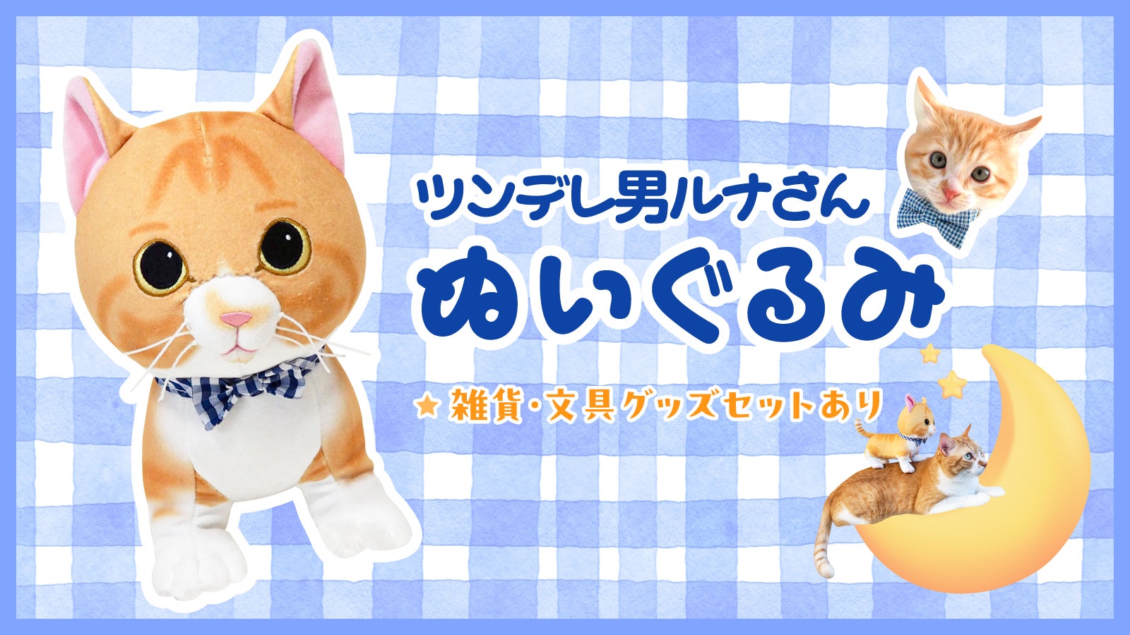 SNS総フォロワー3.8万 猫の【ツンデレ男ルナさん】がぬいぐるみになって登場!Tシャツやタオル、文具などその他オリジナルグッズの数々とセットも含めた先行予約販売をMakuakeにて開始!