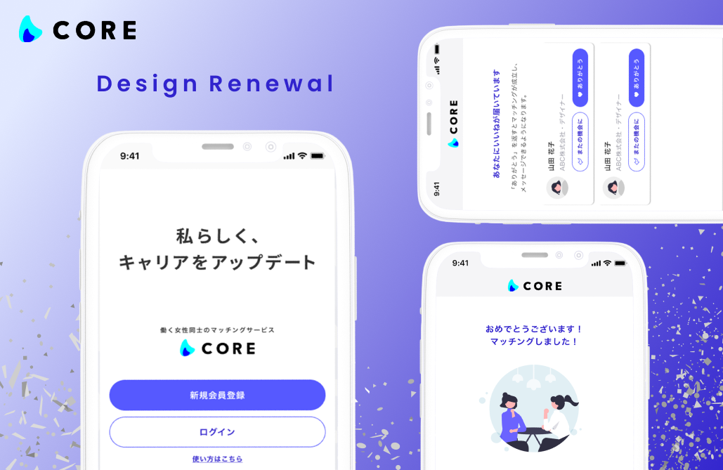 女性向けキャリアマッチングサービス「CORE」のデザインを全面的にリニューアルしました!