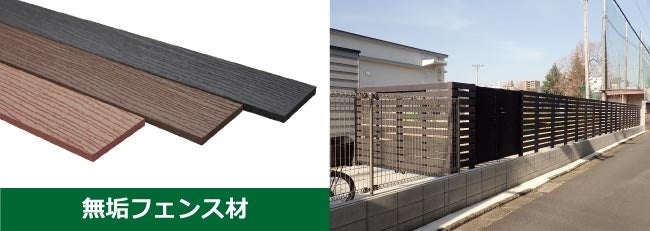 天然木と同様の加工ができ、腐りに強い人工木ボード材です。施工性が良いため、様々な形にカットすることが可能です。カットや削り加工を施しても、中がしっかり詰まった無垢材で中も均一になっているため、木口処理等の手間暇なく美しいフェンスに仕上がります。