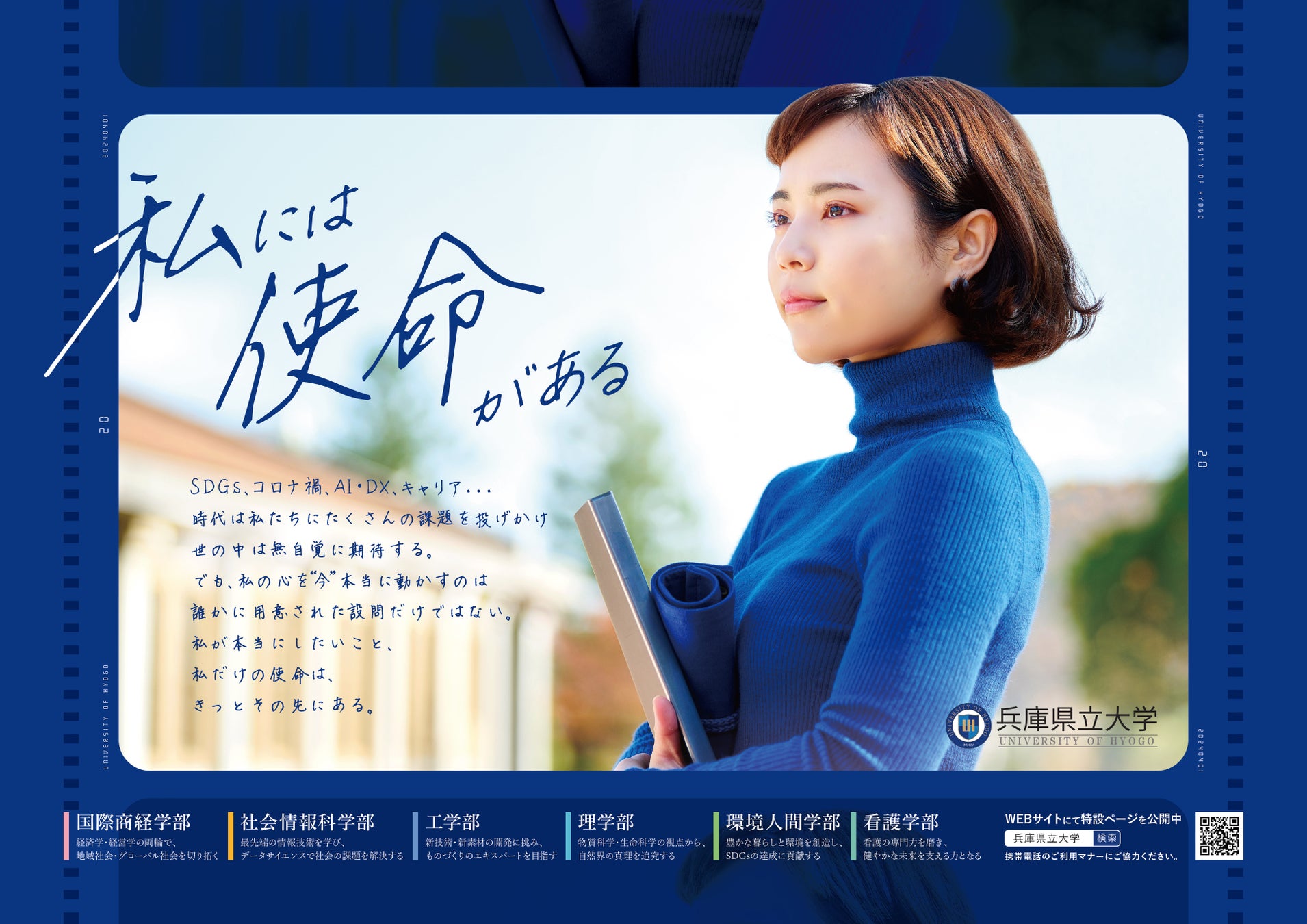 学生の皆さんに、自分の本当にやりたいことにじっくりと向き合い、一人ひとりの「私だけの使命」を兵庫県立大学で見つけてほしいという想いを込め、ポスター・SNS動画の掲出、特設サイトの開設を行い、高校生・大学生への応援メッセージとして発信します。