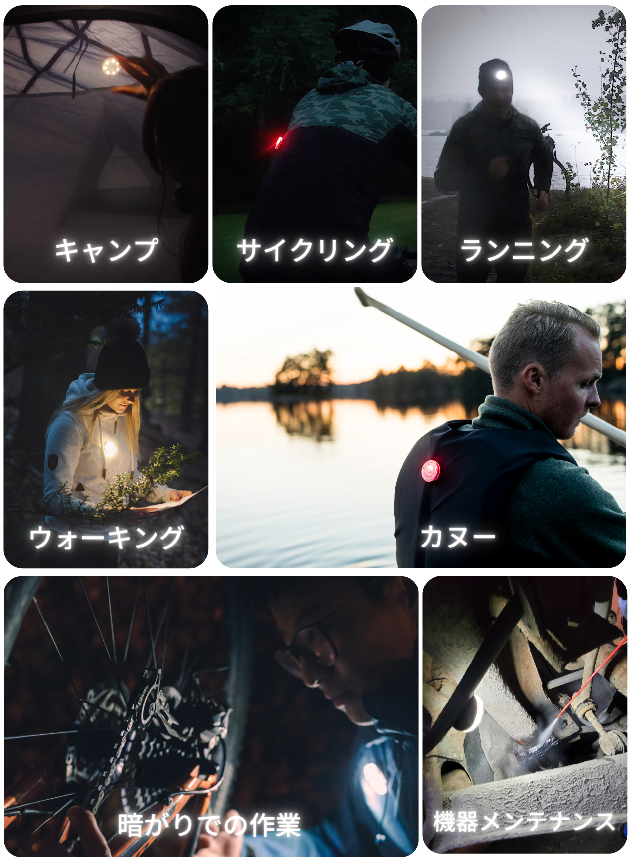 キャンプやランニング、サイクリングなどのアウトドアまもちろん、自動車の整備や室内作業時の手元の明かりにも便利!いちどGelaLightを手にしてしまうと、もう無くてはならない存在になること間違いありません!!