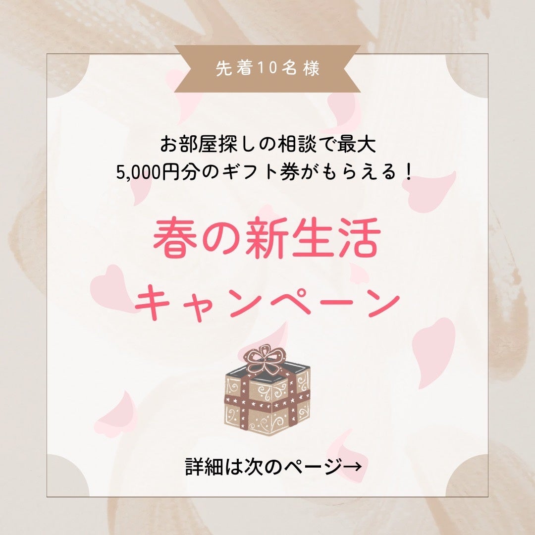 お部屋探しのご相談で最大5,000円分のギフトカードをプレゼント!春の新生活キャンペーン開催!