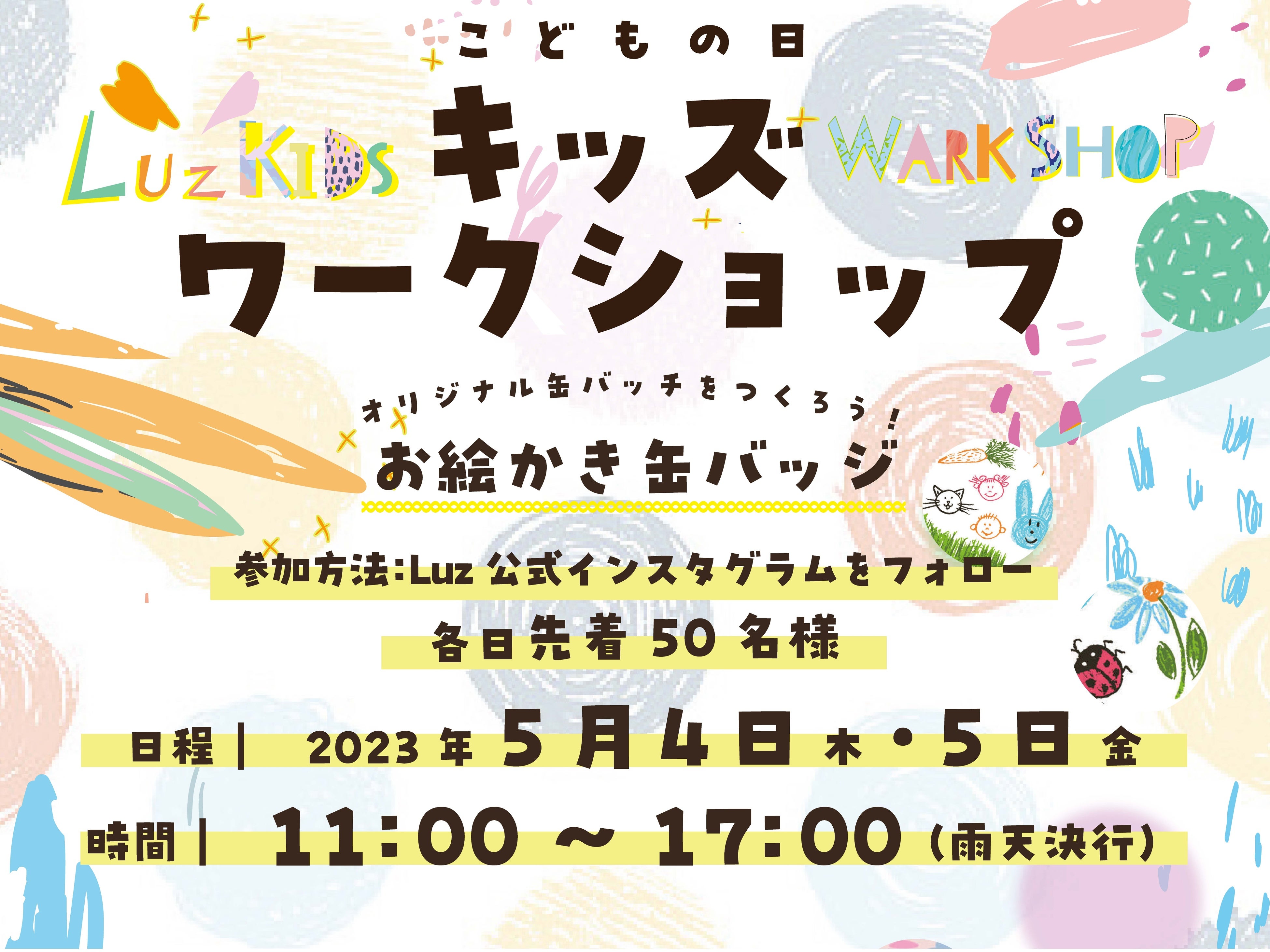 また、5月4日(木)・5日(土)はお子様向けのワークショップ「お絵かき缶バッジ作り」を開催し、世界にひとつの思い出作りを体験いただけます。