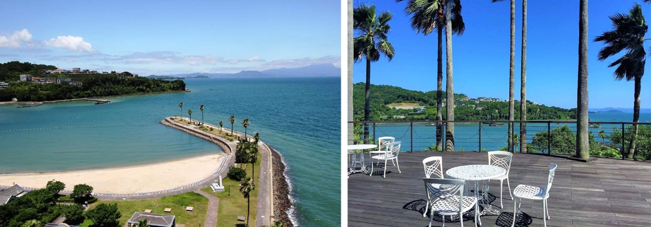 ホテルアレグリアガーデンズ天草のテラスで風を感じながら天草の海を眺めて、ゆったりと心の風景を変えウェルビーイング(幸せ、自由)を感じます。