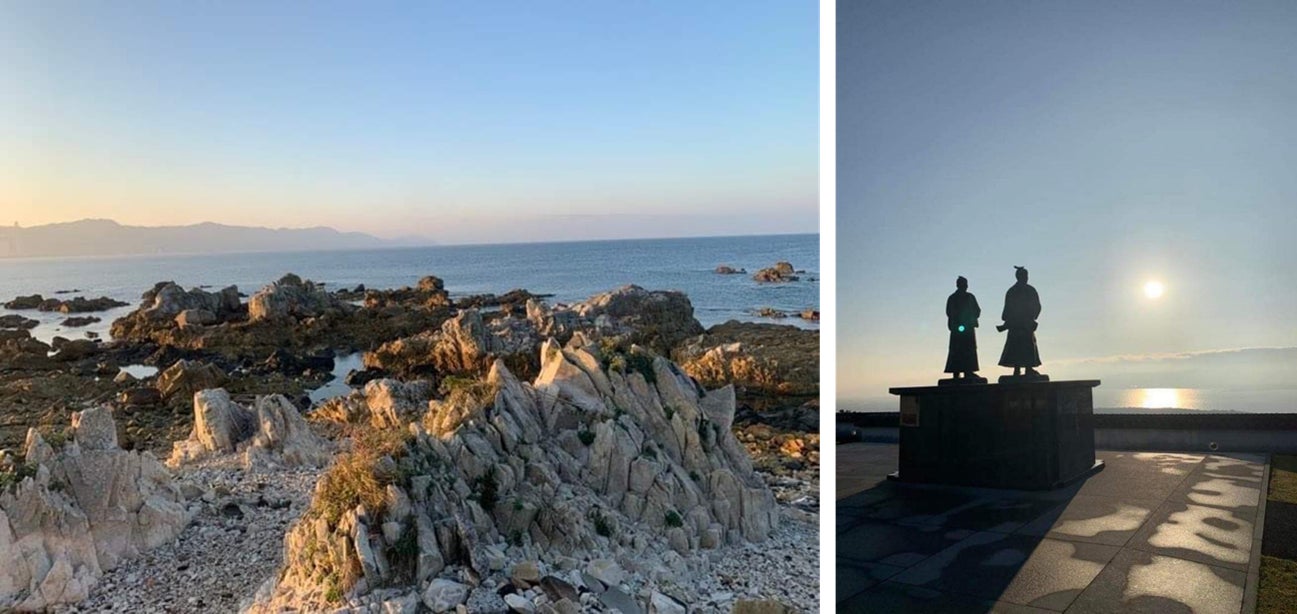 白岩崎海岸の風はやわらかく、心地よく、遠い昔に見たような懐かしさがこみあげてくるような感覚にさせてくれ時空をさかのぼりタイムスリップ。未来のビジョンを描き今の自分の姿を見つめます。