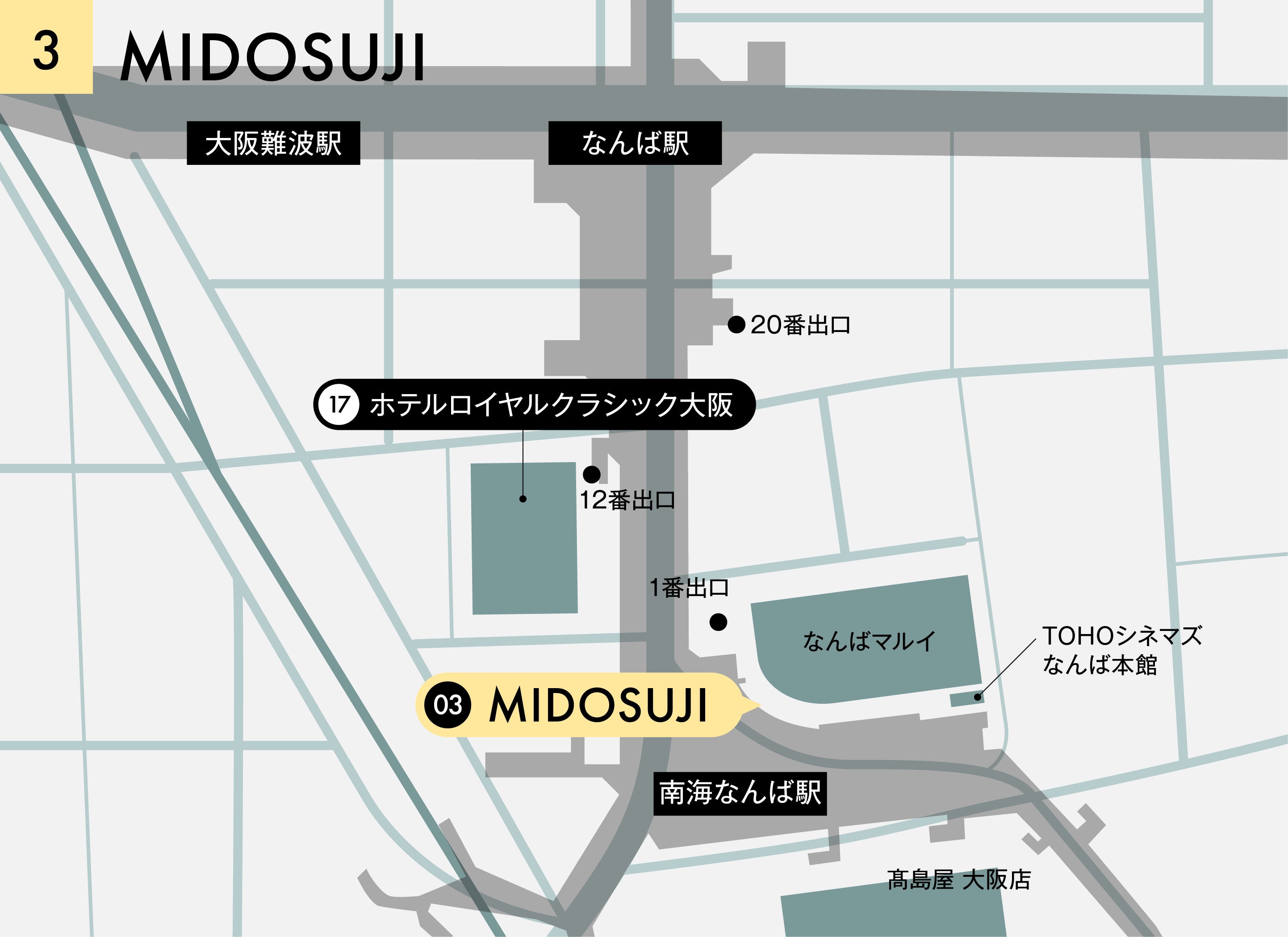 協力:一般財団法人おおさか創造千島財団、一般社団法人ミナミ御堂筋の会、graf、シティープロモーション研究所、大丸心斎橋店、千島土地株式会社、大阪府立江之子島文化芸術創造センター(enoco)