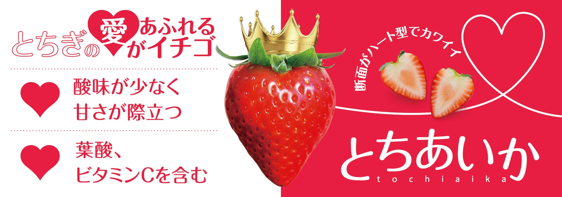 「葉酸とビタミンCを含む」「酸味が少なく、甘さが際立つ」そして「断面がかわいいハート形」というバレンタイン・ホワイトデーにピッタリの特長を持つ栃木県産の新品種いちご「とちあいか」が最盛期を迎え、全国の青果店やスーパーなどで取扱いが増加しています。また2月9日(木)から首都圏の親子カフェで「とちあいか」の試食サンプリングを開催します。