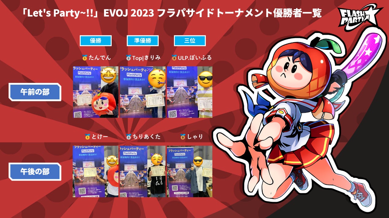 フラッシュパーティーコミュニティ「フラパ同好会」は3月31日に「Let's Party~!!」EVO Japan 2023 フラパサイドトーナメント(以下、本サイドトーナメント)を開催しました。多くのプレイヤーや観客のご参加をこの場を借りて御礼申し上げます。