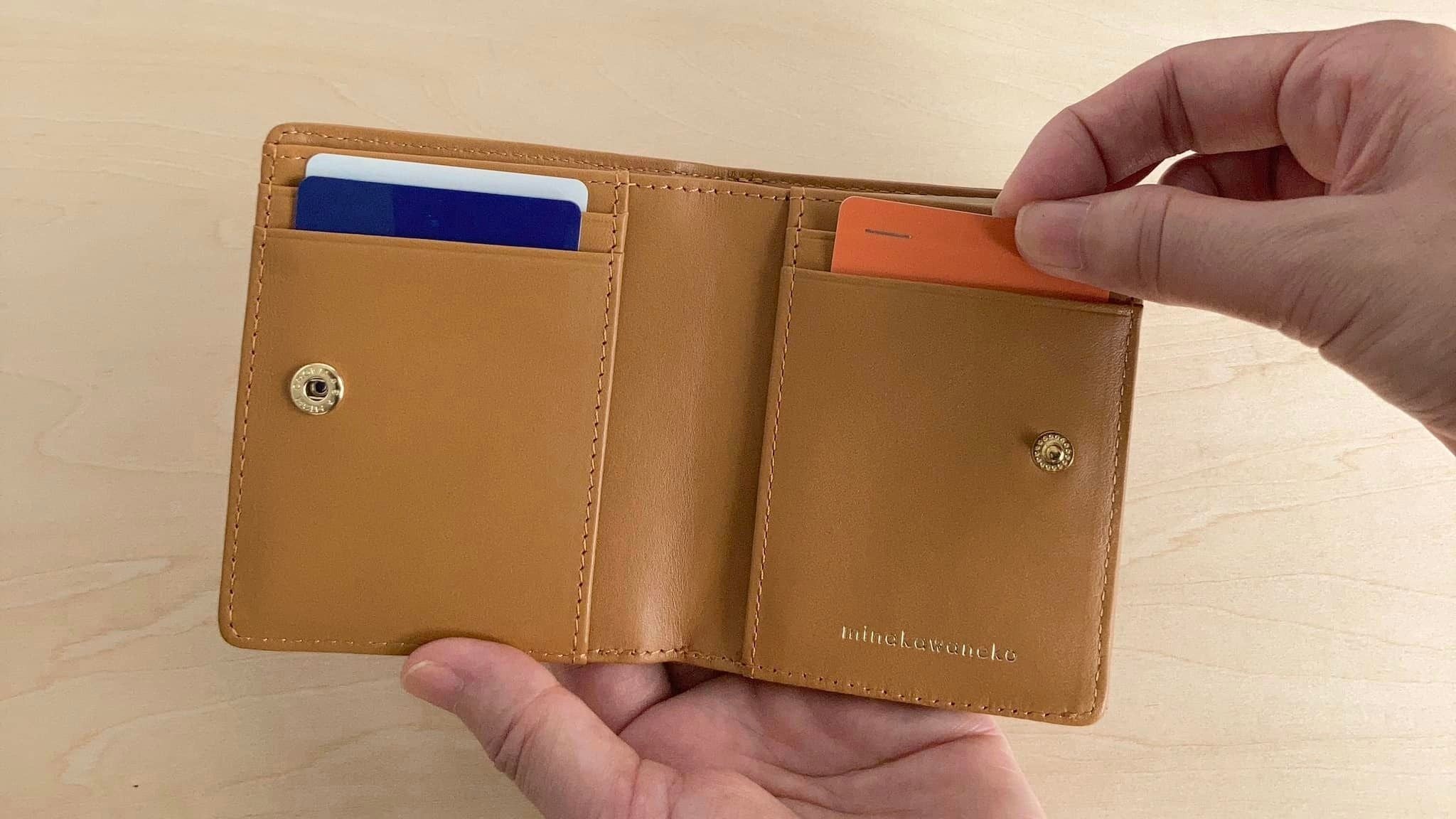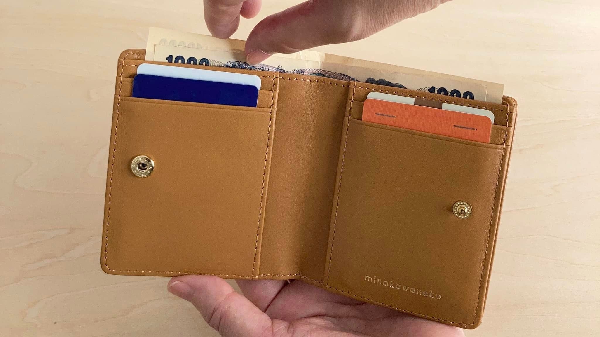 ②コンパクトに持て、使いやすい仕様の二つ折り財布