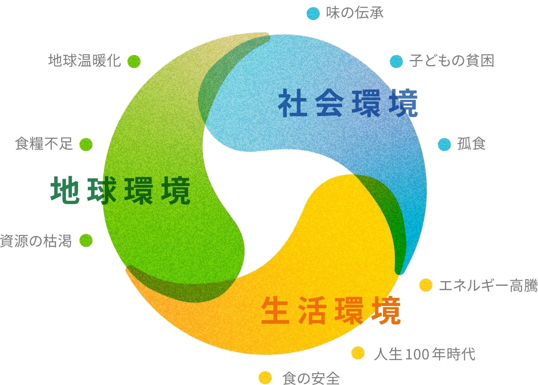 環境変化が激しい今日において、人々の生活、地域社会、地球環境といったそれぞれの領域で様々な課題が浮き彫りになっています。