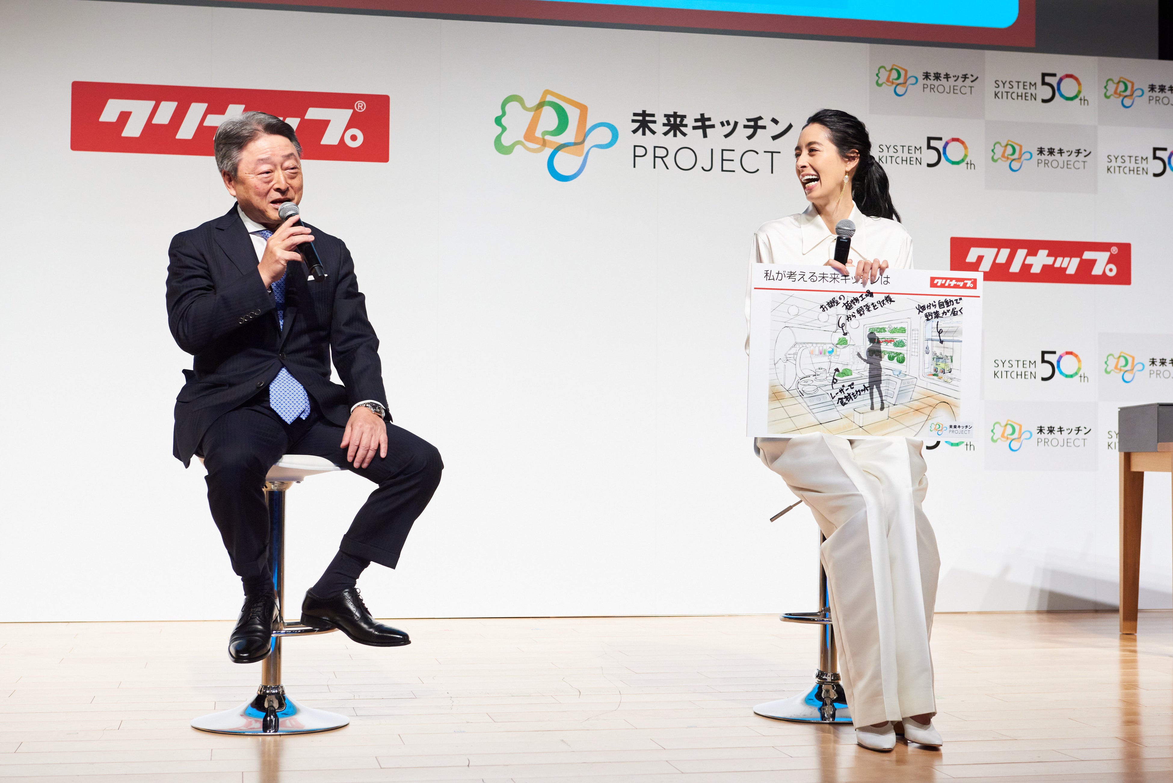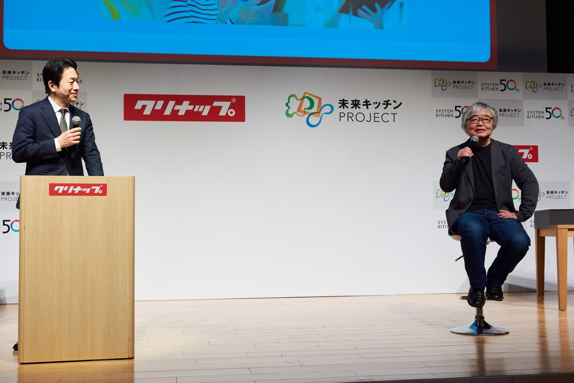 「未来キッチンプロジェクト」趣旨発表/武蔵野美術大学との産学共同「未来キッチンラボ」創設/「キッチンキャビ リサイクルプログラム」発表/「未来キッチン イラストコンテスト」開催発表/プロジェクト応援リーダー就任式/「未来キッチン」トークセッション/フォトセッション