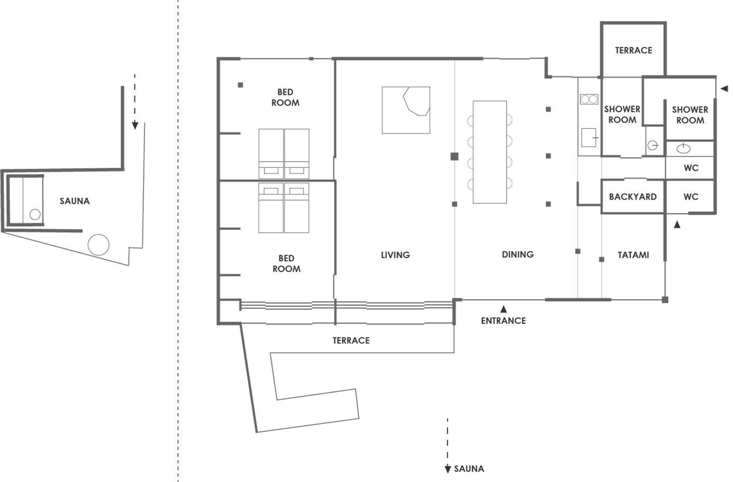 サステナブルな観点から、お湯を作るエネルギーをできるだけ減らすことにし、代わりにサウナで身体をあたためてもらえるよう、貸切サウナも併設しました。