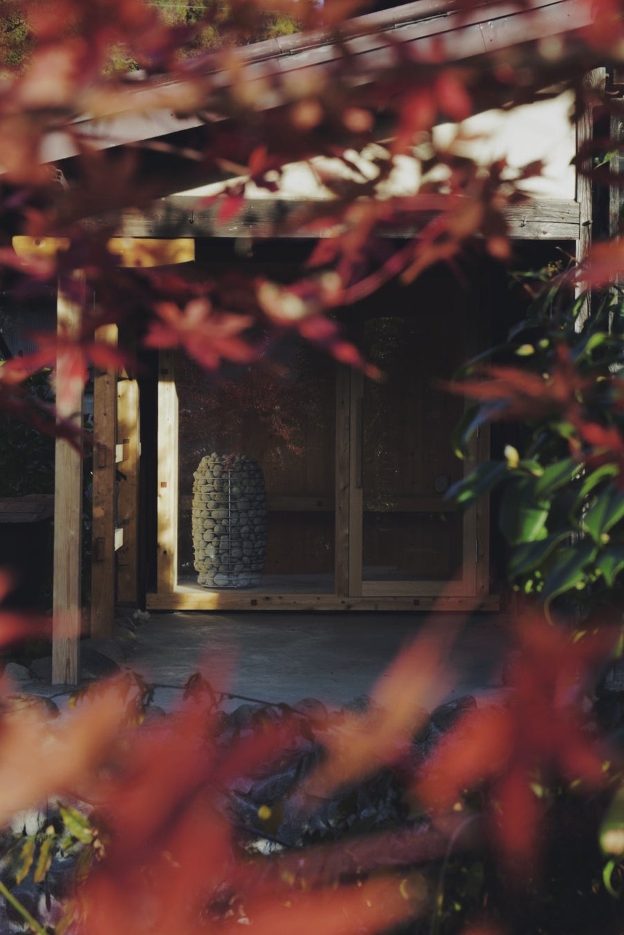 外の庭に面したサウナは、四季折々の気色を楽しめます。