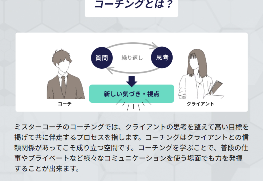 ミスターコーチのコーチングでは クライアントの思考を整えて高い目標を掲げて共に伴走するプロセスを指