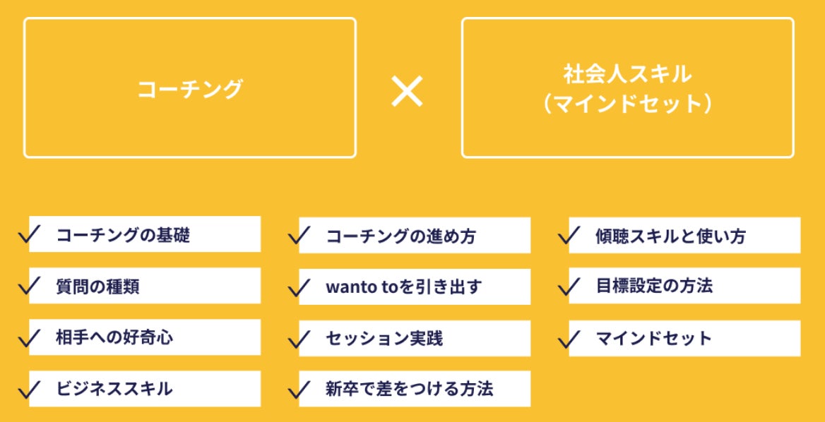 【コーチング×社会人スキルを座学と実践を交えた学習方法で体系的に学べる】