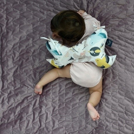 有名理学療法士が開発した、天使の羽の形をした赤ちゃん用まくら。独自の形状によって頭と体にぴたりとフィットし、ハイハイしている時も寝ている時も赤ちゃんの頭を衝撃と重力から守ります。表面は最高級コットン。まくらの内側には弾力ある抗アレルギーシリコン素材が詰まっており洗濯機で丸洗いができます。