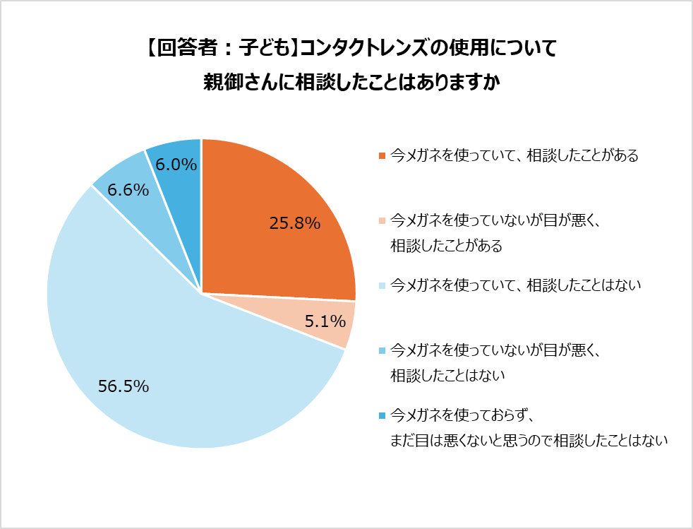 一方、コンタクトデビューを親に相談したことがある子どもは約3割にとどまる
