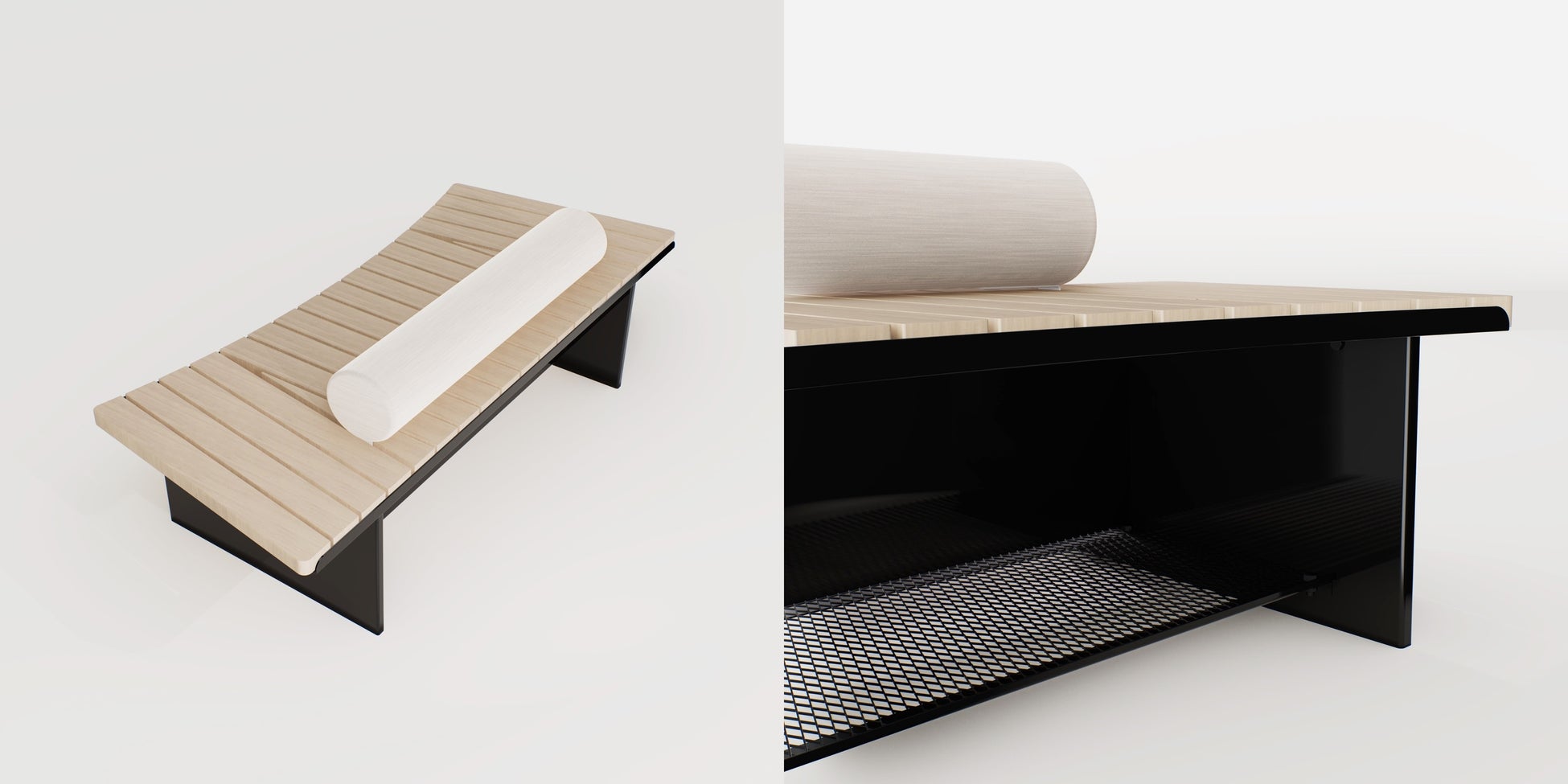 「ocota sb」は、最大三人座ることができるベンチ。二人だとゆとりを持って座れる広さがあります。