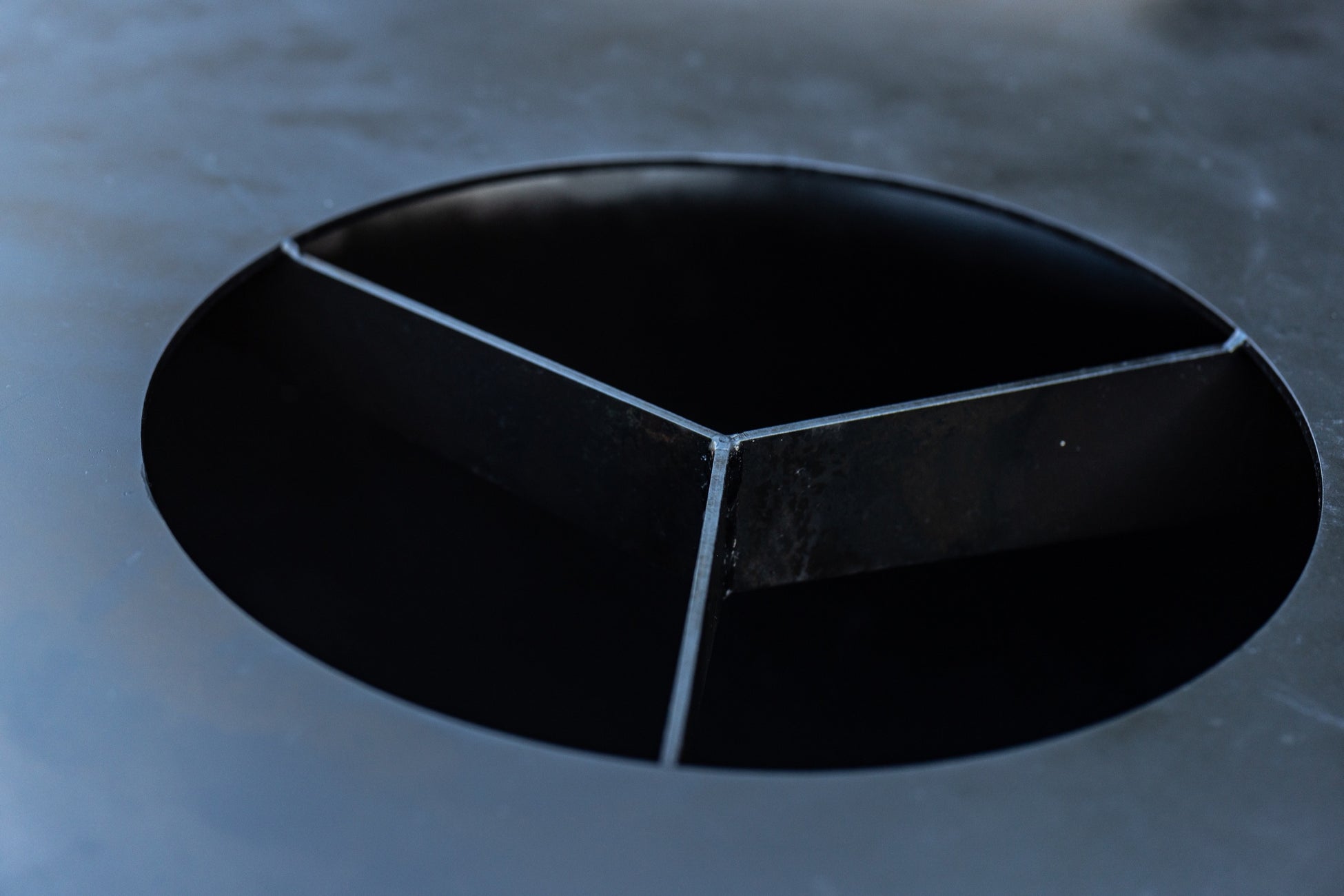 中心の五徳部分は三つ叉になっているため、それぞれの穴に薪を差し込むだけで、簡単に美しく薪を組むことができます。焚き火初心者でも、火を育てやすい構造です。