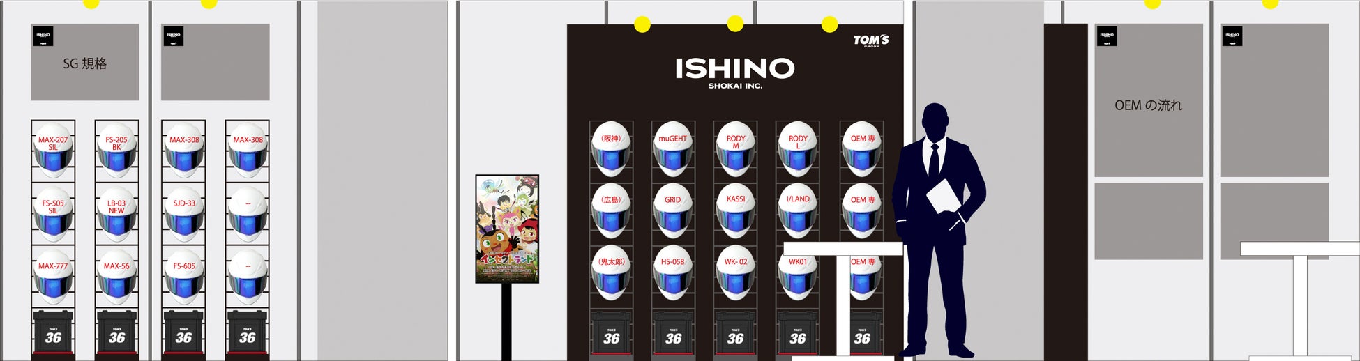 石野商会のブースでは、今年より着用が努力義務化された自転車用及び電動キックボード対応ヘルメット、バイク用ヘルメット等、いずれもコストパフォーマンスに優れたSGマーク認証品のOEM(PB)対応製品を展示致します。