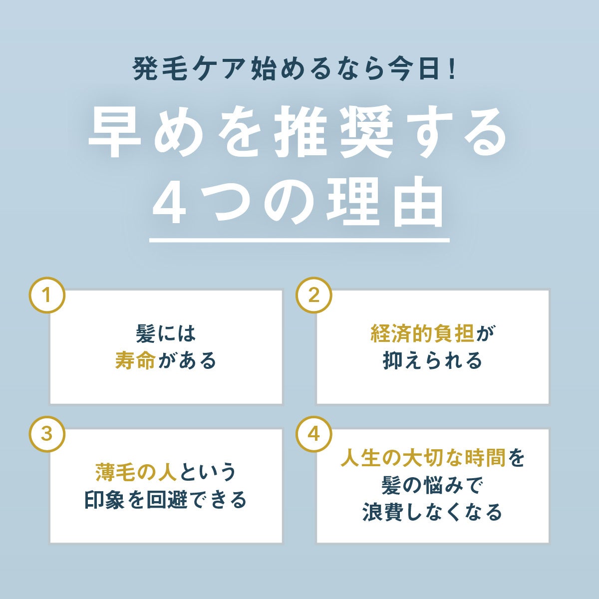 ぜひ早めの発毛ケアで今ある毛髪の維持または❝自然な薄毛回復❞を目指しましょう。