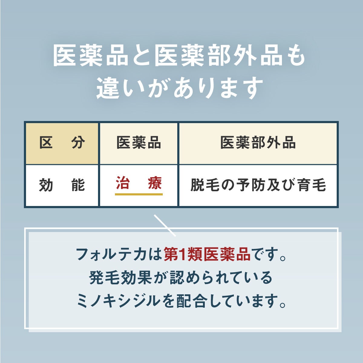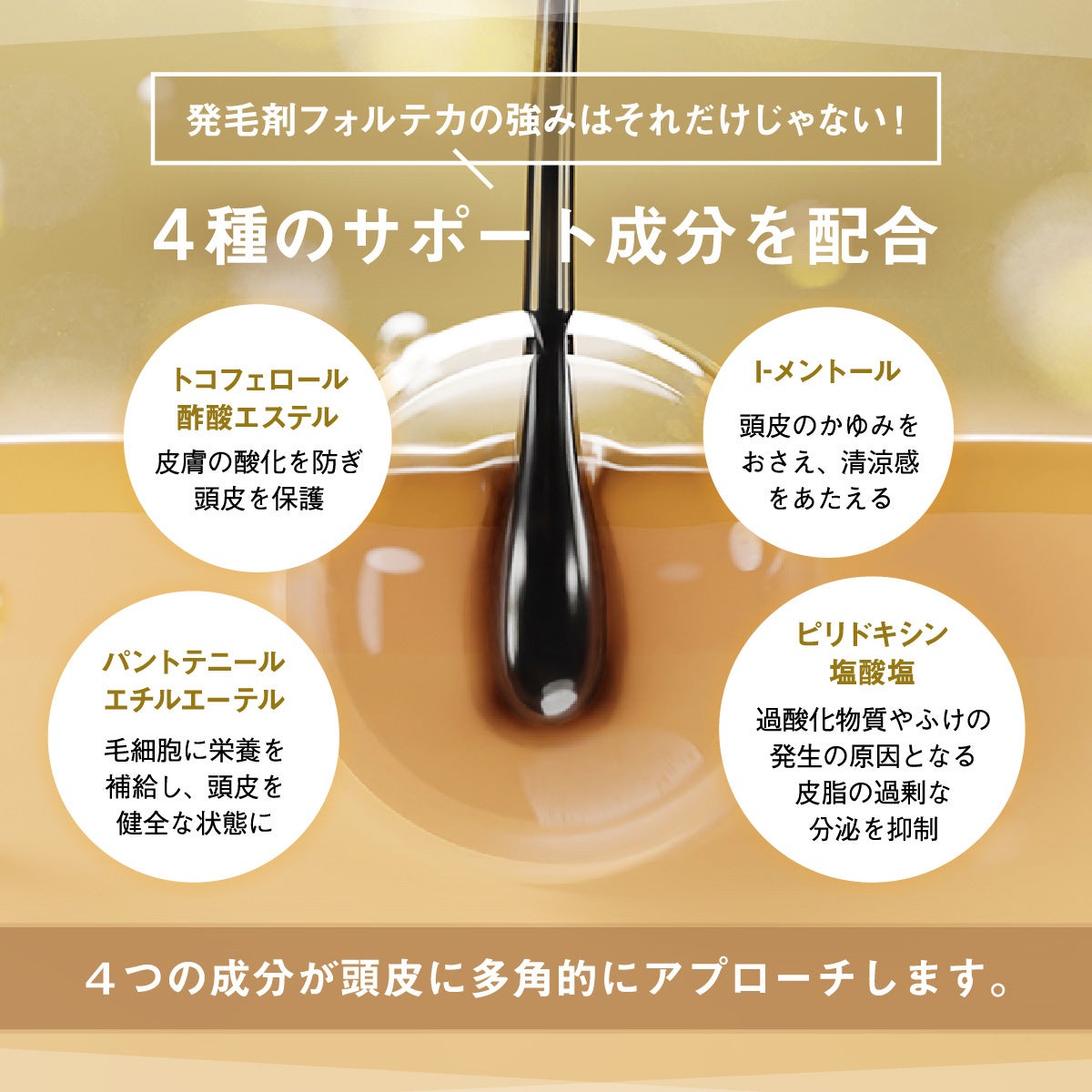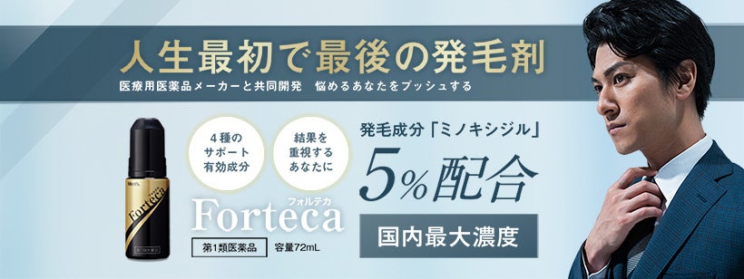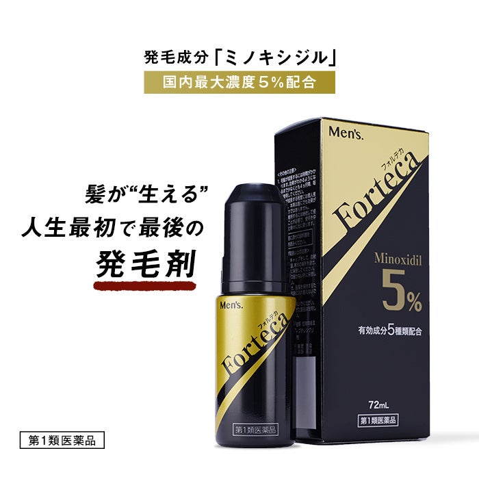 新商品「フォルテカ」(第一類医薬品)は発毛効果が期待できるミノキシジルを5%配合(国内最大濃度※3)しているので、発毛効果を実感できます。