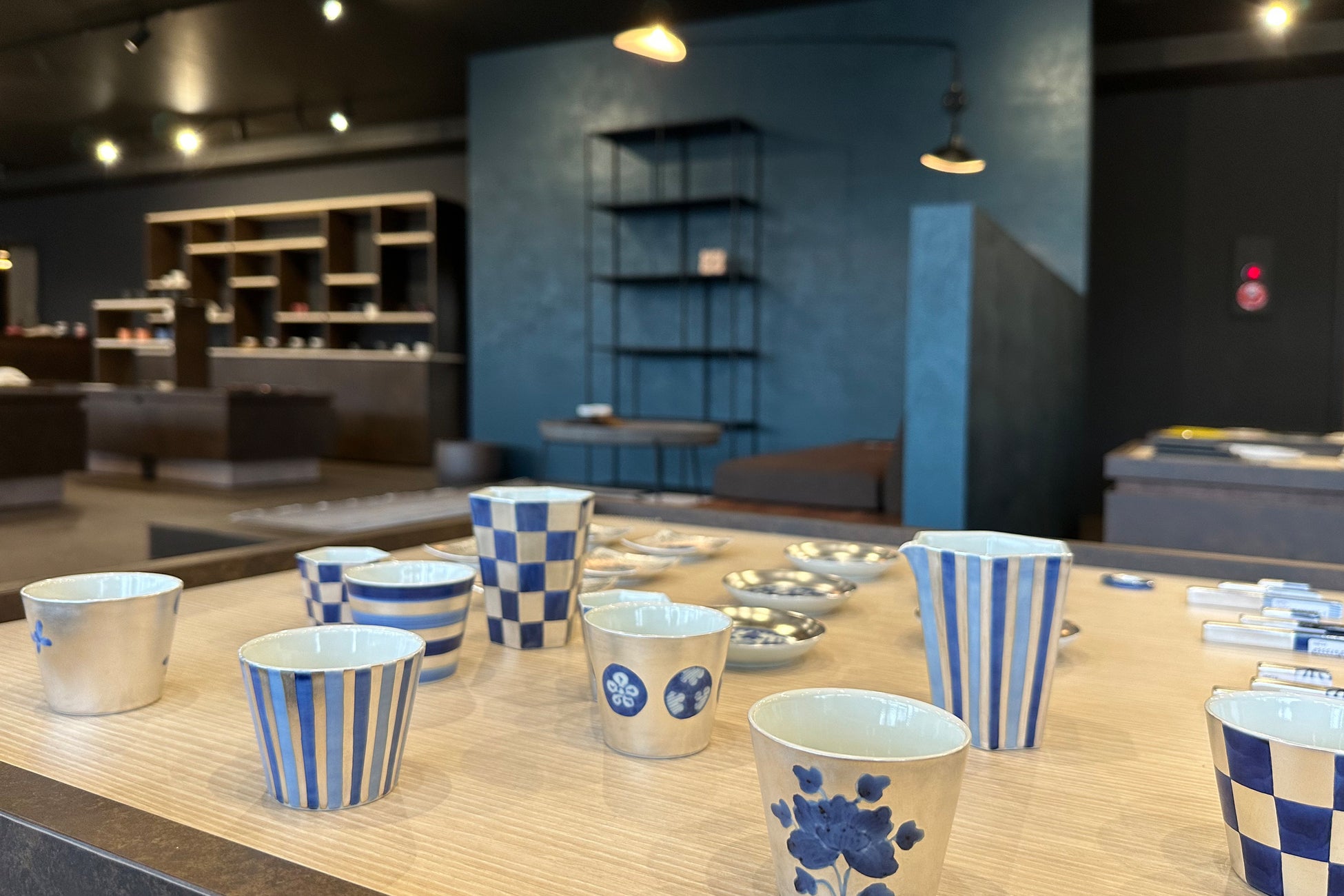 ダークブラウンを基調とした内装の落ち着いた空間には、有田焼を中心に、肥前地区の陶磁器である伊万里焼、波佐見焼、三川内焼が並び、それぞれの窯元や作家のものづくりや世界観をご紹介いたします。