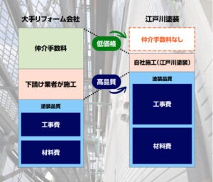 工事の保証の部分です。 江戸川塗装では地場の職人をそのまま依頼できるので価格が落とせます。