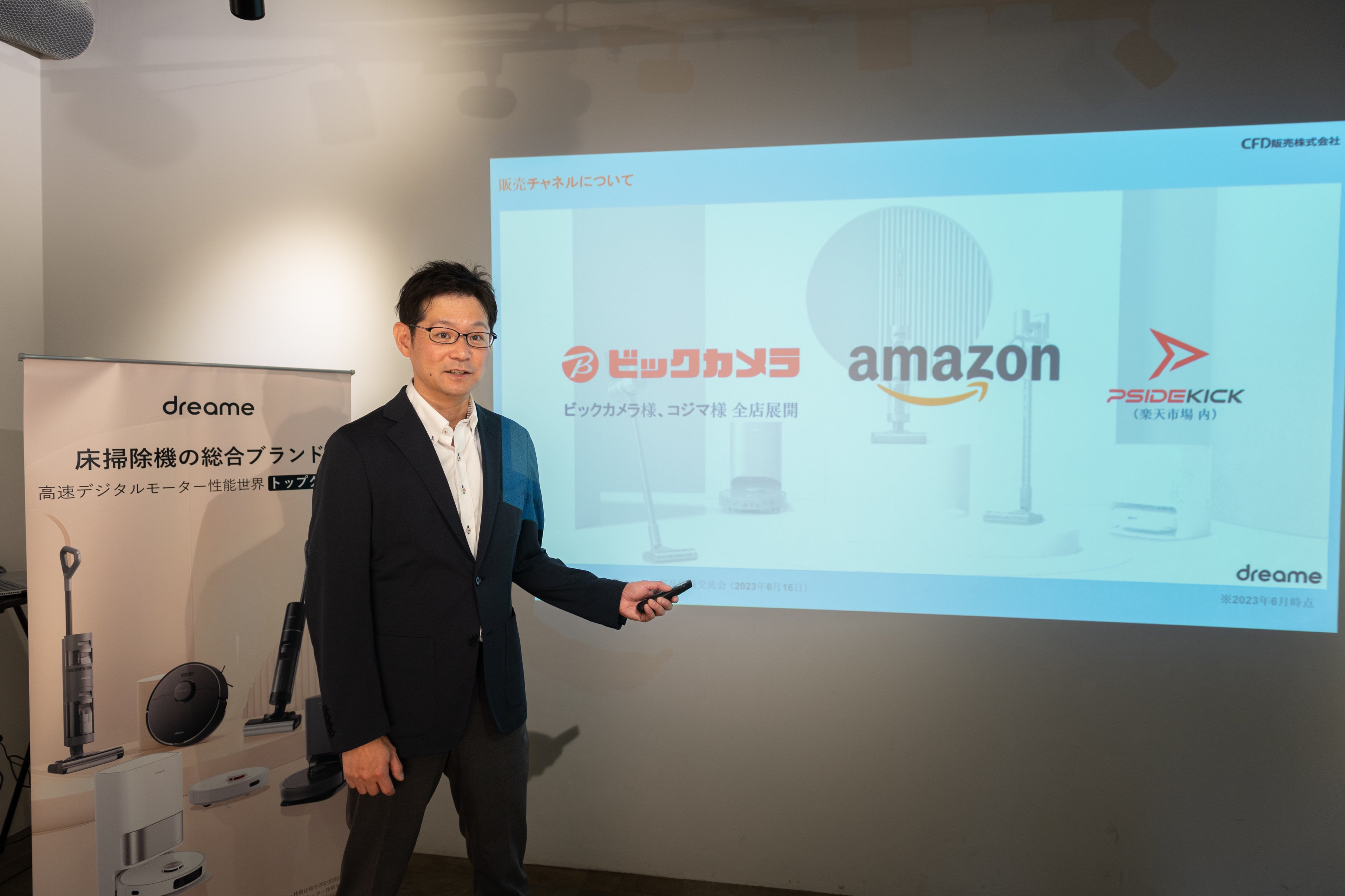 続いてDreameの日本国内正規代理店であるシー・エフ・デー販売株式会社(CFD販売株式会社、本社:愛知県名古屋市)の代表取締役社長である三谷弘次より、今回の日本市場における販売戦略をご紹介しました。