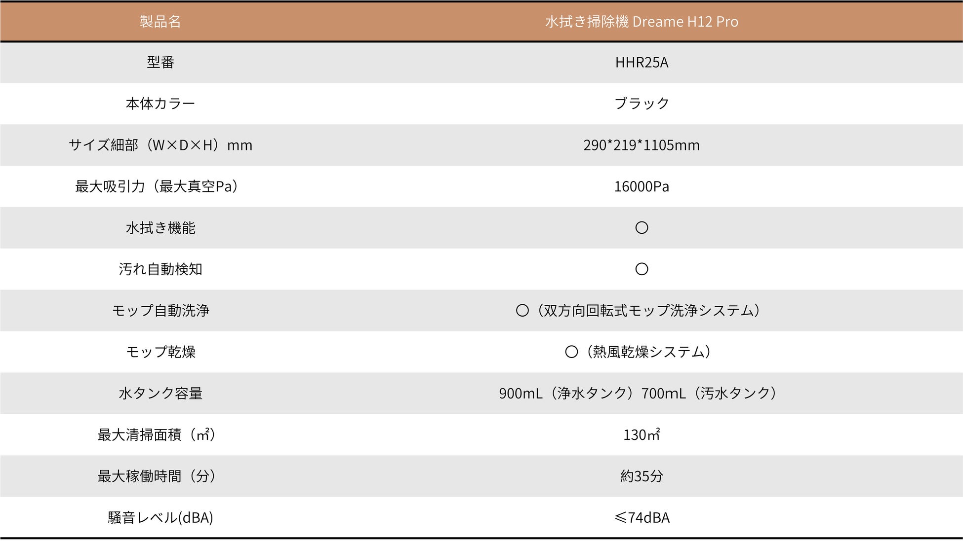 【水拭き掃除機 Dreame H12 Pro製品仕様】